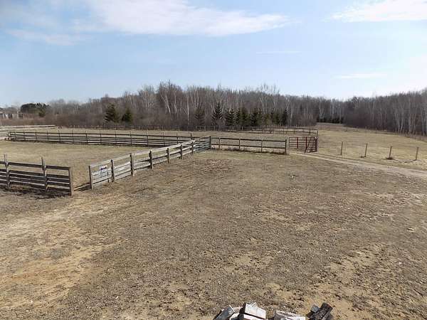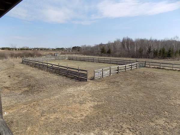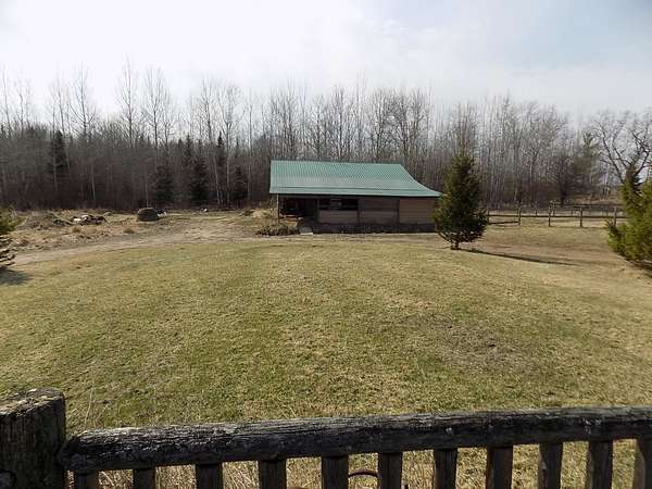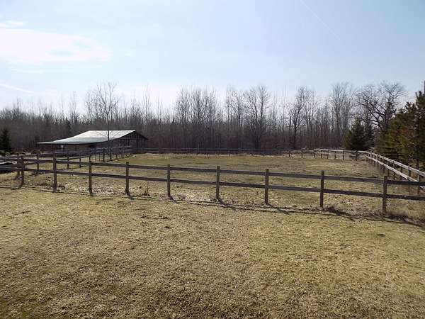Est $2,007/moRiding arena! Do I have your attention? Check out this 1500+ sqft Full log home that sits on 6+/- acres. Knotty pine throughout the home. Full length deck that overlooks the back yard that has an 80x200 riding arena, 60x90 side training paddock. Out the side of the house is an approx 40x60 polebarn with an 'L' shaped paddock towards the road. The detached 30x44 heated garage was used as a body shop repair, complete w/ a paint booth bay. Several areas around the property is already fenced off and ready for your animals!