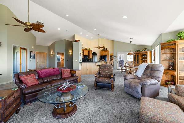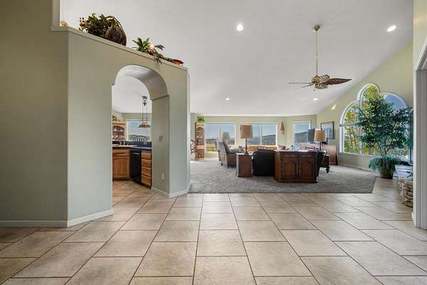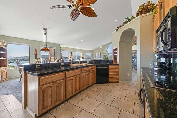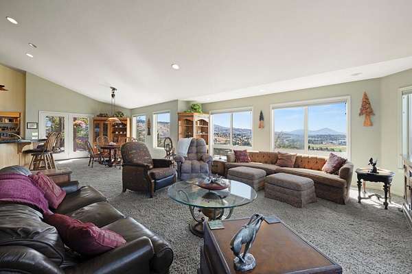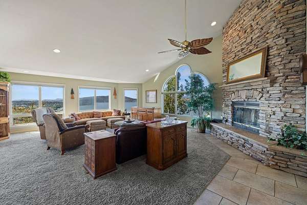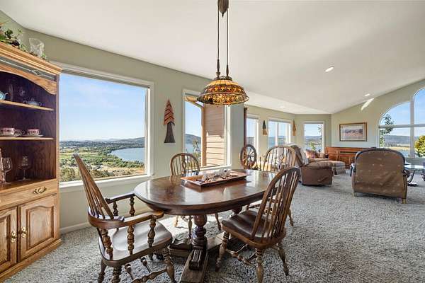 Beautiful open-concept home on sought-after Sunset Ridge with expansive, panoramic views of Upper Klamath Lake and unforgettable sunsets. Situated on a private 5-acre parcel with natural, low-maintenance landscaping, this home combines privacy and convenience--just minutes to town and the medical center. Inside, enjoy an open-concept great room with vaulted ceilings and a gorgeous wood-burning fireplace. The kitchen features granite tile counters, tile flooring, breakfast bar, and a large walk-in pantry. Primary suite on the main level, with two additional bedrooms (one used as an office) plus a spacious bonus room above the 3-car garage. Step out to a covered deck and soak in the views. Lots of storage and just incredible views from almost any room!