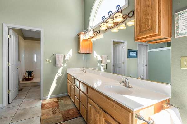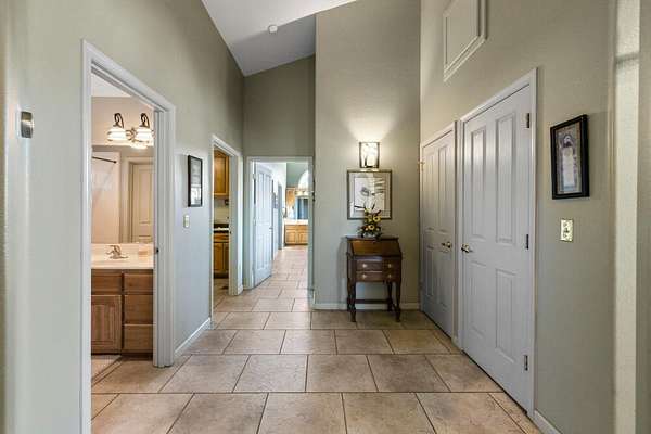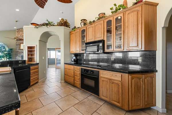 - Breakfast Bar, Built-In Features, Ceiling Fan(s), Double Vanity, Granite Counters, Linen Closet, Open Floorplan, Pantry, Primary Downstairs, Shower/Tub Combo, Smart Thermostat, Solar Tube(s), Tile Counters, Vaulted Ceiling(s), Walk-In Closet(s)