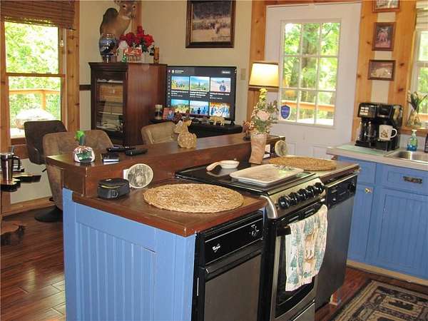 Discover Spotted Fawn Ridge Estate, a rare 13.6-acre private mountain sanctuary offering 180-degree panoramic views of Pine Log Mountain. Tucked away just 2 miles off Henderson Mountain Road and Young Loop on a quiet 8-home county road, this hidden gem combines unmatched seclusion with natural beauty. The property includes a recently renovated 2-bedroom, 1-bath cabin (approx. 1,100 sq. ft.) featuring: Spacious decks with sweeping mountain views, White pine tongue-and-groove walls and ceilings, Loft-style guest space, Kitchen/dining combo with bar-to-table conversion, Primary bedroom has lots of natural light with stunning mtn. View. Large closet and sliding glass access to deck with fire pit and rocking chairs, Oversized bathroom with double-seat shower, oak cabinetry, and jetted spa tub with a picture window with beautiful view of Pine Log Mountain. A 700' babbling stream runs along the rear boundary, while the dogwood-lined ridge is home to deer, turkey, owls, and countless songbirds -- a nature lover's dream. Monitored Video Security System and Security Gate. This estate offers the perfect opportunity: live comfortably in the cabin while constructing your dream home, then transition the cabin into a guest house, family home, recording studio, office , or rental. Privacy , nature , flexibility and stunning views are all included at Spotted Fawn Ridge Estate.