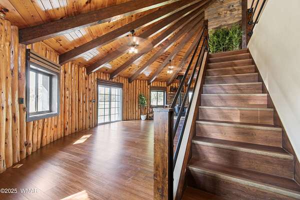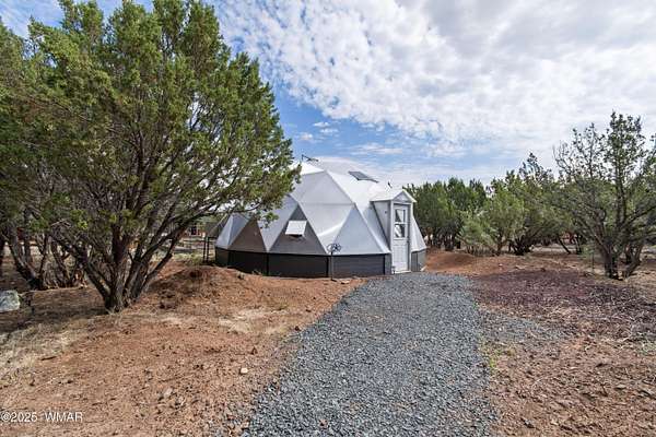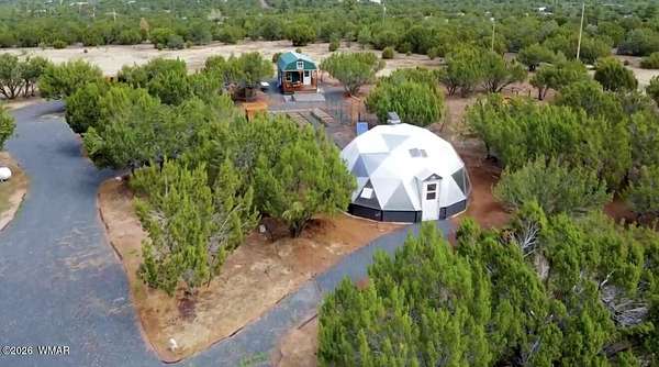 Discover this beautifully remodeled 2,500 sq ft off-grid paradise in Vernon, AZ, set on 10.03 private, level, and tree & meadow-covered acres. Remodel completed in 2025, the residence offers 4 bedrooms and 3 bathrooms with modern updates throughout, blending comfort and functionality. This horse property is fully equipped with a 4-stall horse barn, making it ideal for equestrian use. Additional improvements include a new charming tiny house, a high-end professional greenhouse with an outdoor garden area, and a rare underground root cellar for storage and preservation. The fully-owned solar system is state-of-the-art. Full RV Hookups. The gated entry ensures security & enhances the sense of privacy, while the peaceful setting among the trees and water feature provides a tranquil retreat. There are 2 wells on the property, but only 1 is being used. The exterior siding covers the vertical log work that makes up the exterior walls - highly insulated and most likely bulletproof. While the solar system maintains the home, it's also connected to Navopache Electric.