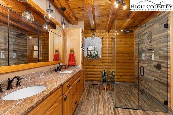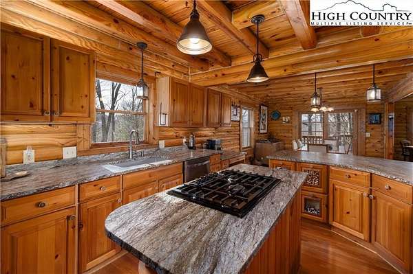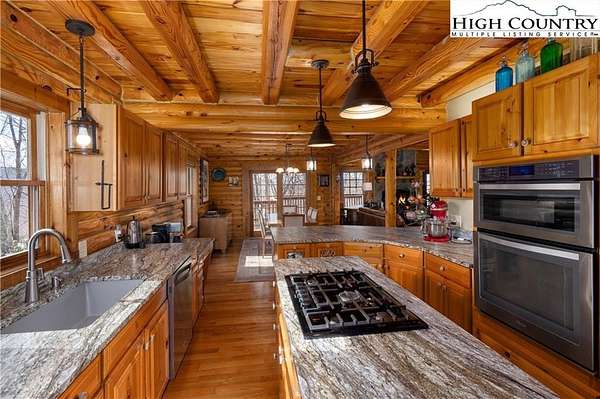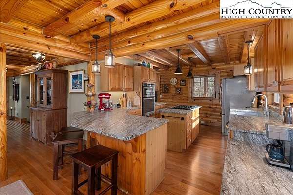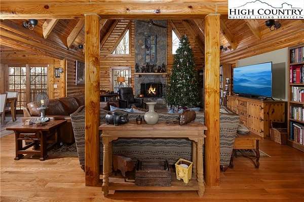 Located just minutes from Downtown Banner Elk, this exceptional custom log home offers a rare combination of privacy, panoramic views, and in town convenience. This is a Southland Log Home, which is known for high quality craftsmanship, precision milled large logs, and long term structural integrity. This home blends classic mountain character with modern comfort. The property sits on a 1.56 acre lot on Klonteska Dr. with direct access to Main Street in Banner Elk, right near the stoplight and within close proximity to local restaurants, shops, Lees-McRae College, and everything this vibrant mountain town has to offer.