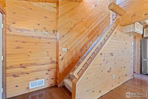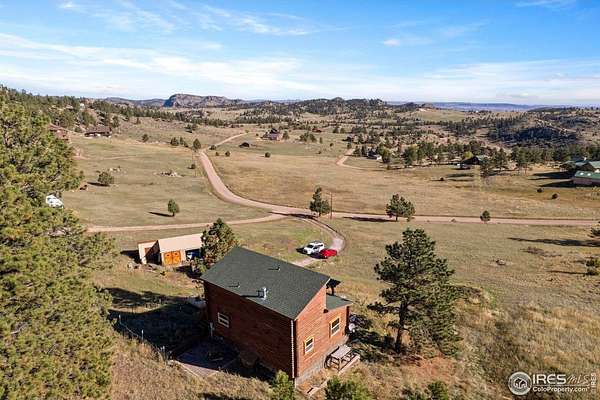 $15K PRICE IMPROVEMENT!! Stunning 2-story log home on 3.57 acres with breathtaking Glacier View Valley and mountain views! Surrounded by pines and wildlife, this private retreat is zoned for 2 horses and features a 540 sq ft loafing shed with a garage/shop, stall, pasture and hay storage. Open floor plan with vaulted and beamed ceilings, wood floors, and an eat-in kitchen with an updated butcher block center island and countertops. The primary bedroom and laundry is located on the main level for easy living. The partially finished basement level allows for tons of storage and workspace if desired. Enjoy two levels of outdoor living with a 12x12 patio off the backside as well as two levels of covered decks! Newer furnace, flooring in upstairs bedrooms, living room ceiling fan, and toilet in full bath. Snow removal is included in the HOA allowing for this property to be easily accessible year round! Easy drive to both Fort Collins and Wyoming! Don't miss this awesome home with tons of potential!