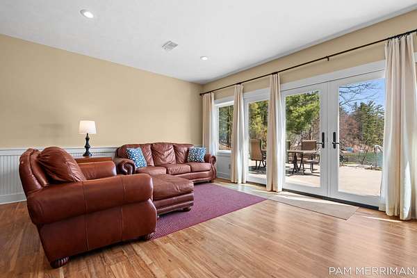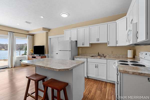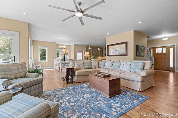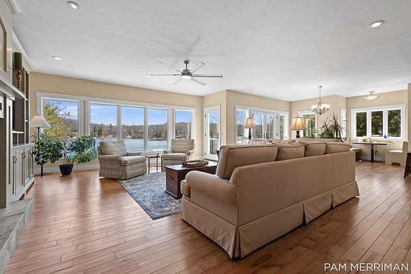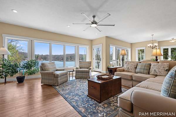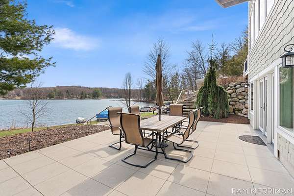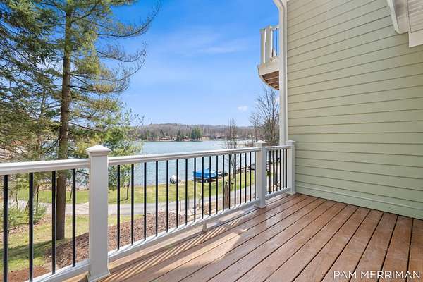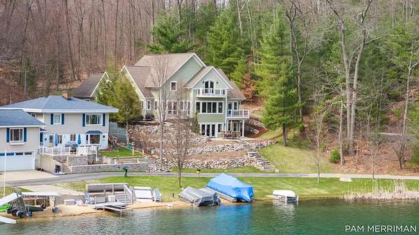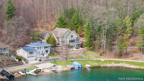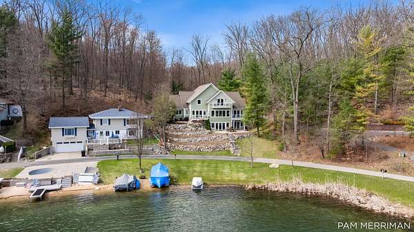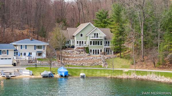 Welcome to your private lakeside retreat on Emerald Lake. Nestled on just under 3 acres, this stunning 5-bedroom, 4-bath home offers an exceptional blend of space, comfort, and natural beauty paired with a lifestyle that is truly unforgettable. Chosen for its rare setting on the highly sought-after Emerald and Sylvan Lake chain, this property is surrounded by crystal-clear blue-green water, rolling hills, and mature trees. The home's positioning offers both breathtaking views of the lake and woods, along with a peaceful sense of privacy from the road. With 39 feet of sandy frontage on this pristine all-sports lake, you'll enjoy endless days of boating, swimming, and fishing, plus boating to Turtle Island. Whether it's a sunset cruise, a fall color tour on the pontoon, or a quiet morning on the water, every day brings something special. Inside, the home showcases rich hardwood floors, a cozy fireplace, and expansive living spaces designed for both relaxation and entertaining. The layout includes two full kitchens perfect for hosting guests or multi-generational living and abundant storage throughout. The primary suite is a true sanctuary. Wake to glowing sunrises reflecting across the water, sip your morning coffee on the private deck, and unwind at night as moonlight shimmers across the lake. The en-suite bath features heated floors, adding a touch of everyday luxury. What truly sets this property apart is the experience of living here. Each season offers its own beauty from migratory ducks resting on the lake in spring and fall, to eagles fishing nearby, to dazzling sunlit sparkles dancing across the water each afternoon. In winter, the landscape transforms into a peaceful, ever-changing snow globe. Step outside to enjoy multiple decks and patios, ideal for entertaining or simply soaking in the serene surroundings. A spacious 2.5-stall garage provides plenty of room for vehicles and all your lake toys. Beyond the home, the community adds even more charm. Generations of families and welcoming neighbors create a close-knit atmosphere, with annual traditions like Independence Day celebrations featuring paddle races, bike and boat parades, fireworks, and the beloved August Corn Roast. Private, low-speed roads encircling the lakes are perfect for walking, biking, running, or golf cart rides. With limited access to homeowners and their guests, the lakes remain peaceful even on busy summer weekends. Located just minutes from downtown Newaygo's shops and restaurants and near the scenic 45 mile Dragon Trail for all biking, hiking and running needs, this property offers the perfect balance of seclusion, recreation, and convenience. More than just a home, this is a LIFESTYLE where every season, every sunrise, and every moment on the water becomes a lasting memory.
