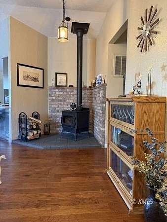 - Carpet Flooring, Ceiling Fans, Hardwood Flooring, Vaulted Ceilings, Walk-In Closets, Window Coverings, Wood Burning Stove
