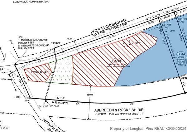 Build your dream home on this 4.69-acre wooded corner lot in Hoke County, just 16 minutes from the Chicken Road ACP on Fort Bragg. A soil investigation has been completed, indicating the property appears suitable for a conventional septic system to support a three- to four-bedroom residence (final approval required through the health department). The lot offers natural character with a small creek along the west side and the Aberdeen Rockfish Railroad line at the rear. Because the land is fully wooded, you'll have the freedom to clear and design the homesite to fit your vision. For added convenience, the property will feature its own driveway, and the seller is installing water taps for the new owner. With its excellent location, accessibility, and natural setting, this property offers both privacy and potential in a growing part of Hoke County.