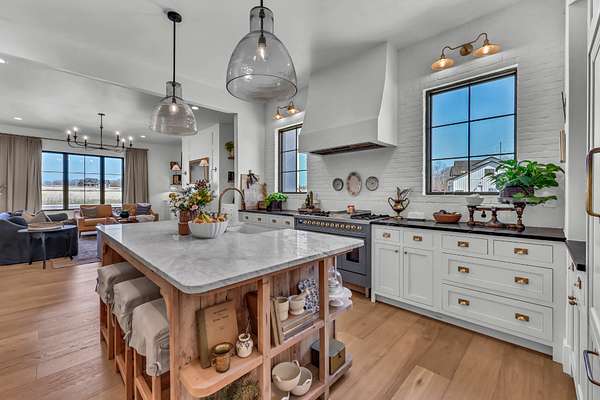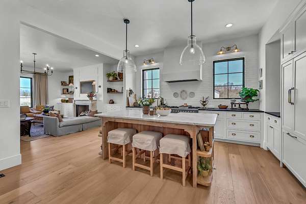 Experience elevated living in this exceptional $1.2M luxury residence offering 3,870 square feet of thoughtfully designed space and truly one-of-a-kind finishes throughout like European brass fixtures, soapstone and marble countertops, elevated engineered white oak flooring, and much more. From the moment you step inside, a grand entry foyer sets the tone, flanked by a private office, library or flex space to the right. To the left, an expansive living room with a historic marble fireplace seamlessly flows into a chef’s kitchen featuring an oversized island, abundant custom fully inset cabinetry, paneled appliances, open shelving and a fully equipped butler’s pantry complete with a secondary refrigerator, panoramic window with a bar top, and extensive storage.