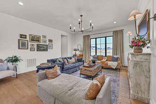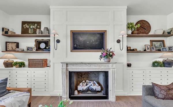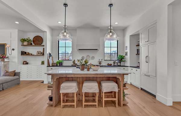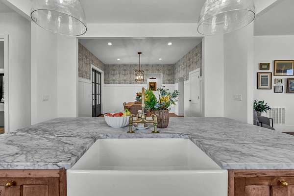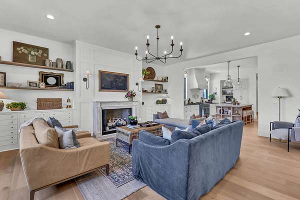 Experience elevated living in this exceptional $1.2M luxury residence offering 3,870 square feet of thoughtfully designed space and truly one-of-a-kind finishes throughout like European brass fixtures, soapstone and marble countertops, elevated engineered white oak flooring, and much more. From the moment you step inside, a grand entry foyer sets the tone, flanked by a private office, library or flex space to the right. To the left, an expansive living room with a historic marble fireplace seamlessly flows into a chef’s kitchen featuring an oversized island, abundant custom fully inset cabinetry, paneled appliances, open shelving and a fully equipped butler’s pantry complete with a secondary refrigerator, panoramic window with a bar top, and extensive storage.