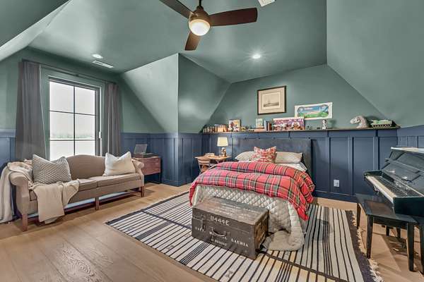 Upstairs, two generously sized bedrooms each offer private bathrooms, along with a charming loft space complete with built-in window seating. A separate staircase off the 3-car garage leads to a large bonus room, fourth bedroom, and full bath—ideal for guests or multi-generational living.