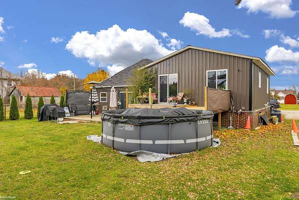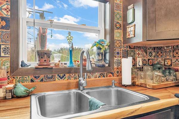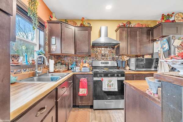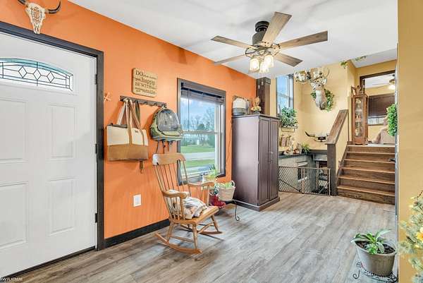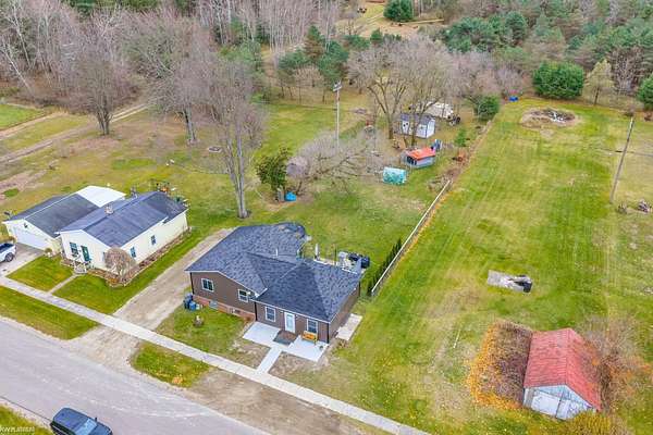 Completely remodeled down to the studs, this stunning home blends modern upgrades with rustic charm. Featuring brand-new steel barn siding, a new furnace and A/C, all-new electrical, insulation, and plumbing, plus a freshly poured concrete patio slab--every major component has been thoughtfully updated. Inside, you'll love the new laminate flooring throughout and the all-new kitchen, beautifully finished with handmade Spanish tiles, terra-cotta grout, and striking salmon-wood countertops. The home includes a comfortable master bedroom and a walk-out basement offering great extra living or storage space. Outside, the property is equipped with two separate RV hookups, including one with its own water and sewer connection, making it perfect for guests or extended stays. As an added bonus, enjoy the ability to bow hunt right on your own property during season, giving this home a unique outdoor lifestyle appeal.