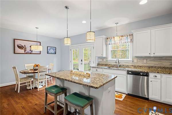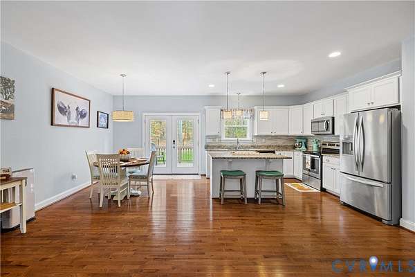 Welcome to 4875 Kimber Ln! Conveniently located just 5.5 miles from the Gum Spring exit off I64, this home sits on 3.89 acres and features 3 bedrooms, 2 bathrooms, 1,826 square feet, a rear deck, and a 2-car attached garage. Beautiful hardwood floors run throughout the living room, dining area, and gourmet kitchen. The open floor plan provides plenty of space and functionality, perfect for entertaining or everyday living with family and friends. The gourmet kitchen boasts granite countertops, a pantry, recessed lighting, stainless steel appliances, and a large island. The layout includes two well-sized bedrooms and a hall bath opposite the spacious master suite. The master suite features a 6x12 walk-in closet, a private bath with a large tiled shower, double vanity, and separate toilet room. This is an amazing opportunity to own a stunning property on a private lot in a prime location!