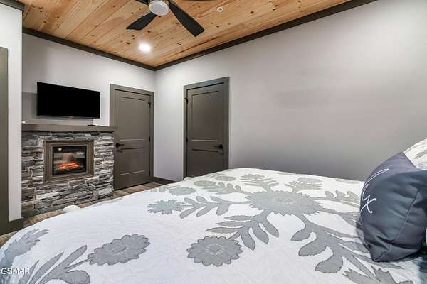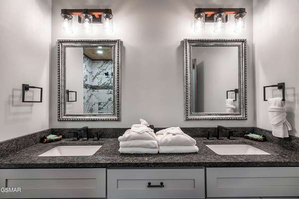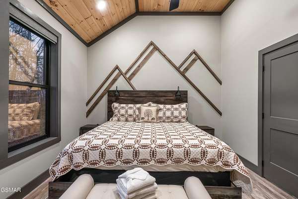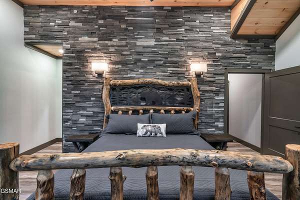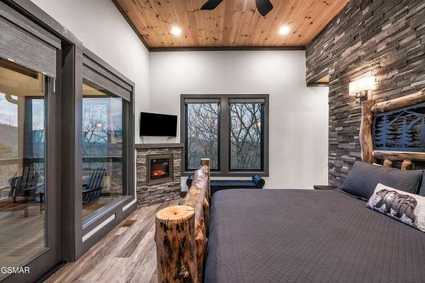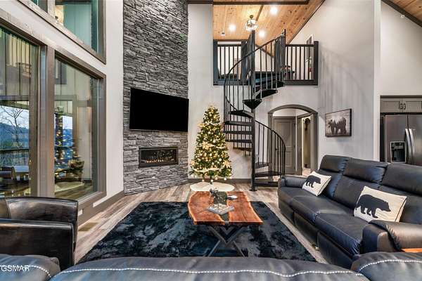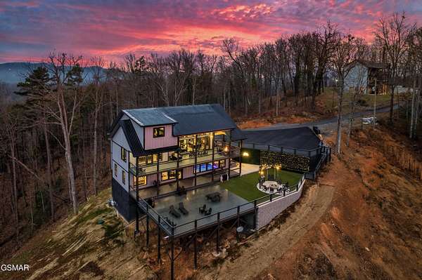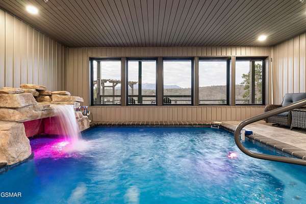 New Construction indoor pool cabin- amazing views! This modern masterpiece nestled within the Smoky Mountains and the tranquility of Wears Valley, offers the captivating views you come to love and expect when you come to East Tennessee! Rental projections $190k! Located in the Heart of Wears Valley, this cabin offers proximity to the Gatlinburg area & the escape to The Foothills Parkway. This mountain retreat has 2 finished floors with an interior pool cabin, and 6 bedrooms, including 2 master bedrooms suites, and will accommodate up to 18 persons. 5 well appointed bathrooms and 2 half baths. This cabin offers years of maintenance free living with Hardi-plank siding and metal roof. The driveway is black topped and accommodates all your guest parking needs. You will find handsome tongue-in-groove pine paneling throughout complemented by Luxury Vinyl Plank except in the wet areas which are ceramic tile. Entering the main floor, you are immediately greeted by an expansive view through the living room to the Great Smoky Mountain landscape! Just beyond the entrance area is a generously sized Great Room with a 20-feet vaulted ceiling, a stacked faux stone fireplace, and lots of floor-to-ceiling windows to enjoy the stunning views. The Trex-decking (Upgrade) spans across the entire width of the mountain retreat, offering hours of outdoor enjoyment. Outdoor furnishings can be enjoyed while grilling your favorite meal on a Blackstone flat grill. The large kitchen features granite countertops, a large island, and stainless steel appliances with Shaker Style dark wood cabinets. An expansive pantry can be used as an owner's closet to keep all your vital needs and supplies. In this cabin you will find two master suites, one of which is on the main level and includes a corner fireplace, a spacious ensuite bathroom with double vanities, an extra-large tiled shower with rainfall showerheads. Access to the large deck with incredible mountain views awaits your guests. Venturing to the second floor, you will find a landing that overlooks the Great Room and has plenty of room for a seating area to enjoy the lovely mountain views. On the this floor, the 2nd Master Bedroom with a corner fireplace may be found, also with a large ensuite bath that features a freestanding tub, a large tiled shower with rainfall showerhead, double vanities, and a private water closet. On the opposite side of the landing are the other guest rooms, each with its own bathroom. The Master Suite and another bedroom enjoy their own private balconies that overlook the fabulous mountain views. On the lower level, you will enjoy a unique themed theatre with comfortable seating and 2 bedrooms that share a Jack & Jill bath. Built-in twin bunk beds in one of the rooms will accommodate 4. There is a half bath, a laundry room, and an owner's closet. The main game room looks out over the gorgeous mountain views from a deck that spans the entire rear of the house and includes a hot tub. The interior pool room is stunning with it's accent walls and vinyl board and batten. A beautiful water feature is also an option on this exquisite cabin. No matter what floor you are on, captivating views can be had from the floor to ceiling glass windows that capture the presence of the Smokies. The home comes fully furnished with linens, dishes, games, a pool table, and decorative items - everything you will need to put directly into an overnight rental program. The photos in this MLS are from another similar cabin we built in Gatlinburg. A Zoom meeting with our builder is required prior to an offer. HOA fee $300 per year. Heating by electric heat pump, and includes a private well and septic system. The home includes a whole-house sprinkler system and a whole house generator so you are never out of power. This is a rare opportunity to own a luxurious property adjacent to the Great Smoky Mountains National Park. Don't miss the chance to make this extraordinary residence your very