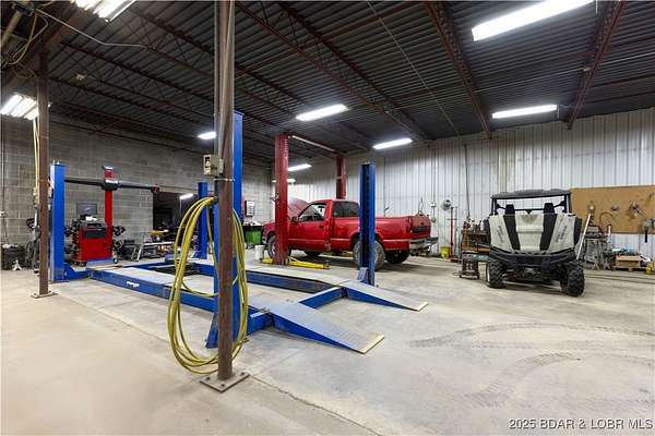 Discover the potential of this approximately 15,000 sq. ft. commercial building at 4876 Highway 52, Stover. With a brand new roof overlay and over 330 feet of highway frontage, this property is currently a tire and auto shop but can be transformed to suit your needs. It features multiple rooms for office space, storage, a warehouse, a kitchenette, and 4 restrooms, 2 with showers. The expansive open area can remain a shop or be customized. Equipped with 4 vehicle lifts, 2 air compressors, and more, the shop is heated by a waste oil furnace. Enjoy easy access through 4 large garage doors, ample parking, and 3.38 acres of opportunity. Inventory is available.