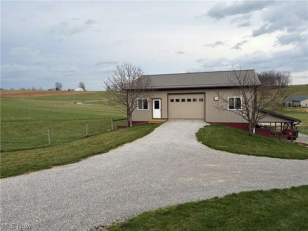 AUCTION TUESDAY MAY 12th 6:00 PM A rare find between Berlin and Mt. Hope! Situated on over 6 acres, this 3-bedroom home was built in 2013 and has 1552 sq ft of living area. The main floor has a custom hickory kitchen with dining area, living room, 3 bedrooms and 2 baths and a spacious 12'x16' screened-in rear porch. There is a full walkout basement with a summer kitchen and a 3/4 bath. Utilities include natural gas in-floor hot water heat with an auxiliary woodburning stove. The 32'x48' shop has living quarters that include a hickory kitchen, dining/living area, 2 bedrooms and 1 full bath. Shop has hot water in-floor heat and its own solar setup for electricity. The 36'x42' bank has 4 box stalls and is fully wired. Nice fenced pasture. Includes a 10'x16' garden shed and a 10'x14' storge barn. Property is move-in ready.