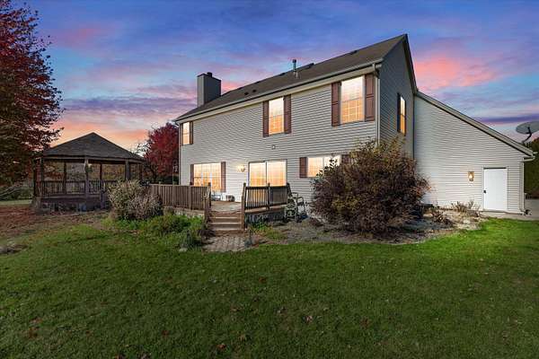 Welcome to West Lake Subdivision adjacent to the Kettle Moraine Conservancy walking trails & ponds w/ fish. 2-story 3 bedroom 2.5 bathroom home w/ an attached 3.5 & a heated detached 4+ car garage sitting on 1.61 acres in Slinger Schools taxed by the Town of West Bend. Very airy open concept living & dining area highlighted by an attractive natural stone face wood burning fireplace. The kitchen features an abundance of cabinets with pullout drawers, plenty of counter space, under cabinet lighting, island & option to dine-in. HUGE main level laundry/mud room! Enjoy sunrises to sunsets from the south facing spacious deck or lighted gazebo. 3 beds & 2 bathrooms upstairs. Ensuite w/ 2 person jetted tub, tile surrounded walk-in shower & HUGE walk-in closet. Home warranty & much more included!