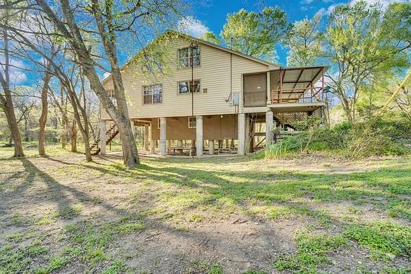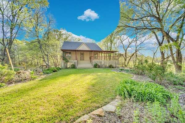 Tucked away in your own private corner of Texas paradise, this one-of-a-kind Ellis County retreat feels like something out of a rainforest dream. Elevated on stilts and backing to a serene creek, the home offers a rare blend of charm, nature, and character—with a versatile space underneath that could serve as a workshop, creative studio, or even a children's clubhouse. Step up to the expansive front porch and take in the beautifully landscaped grounds, where lush flower gardens surround you and create a peaceful, storybook setting. Out back, the oversized porch invites you to unwind while overlooking 2.5 acres of scenic beauty, complete with towering, luscious trees and the gentle flow of the creek beyond. Inside, the home features a spacious dine-in kitchen perfect for gathering, with two bedrooms conveniently located downstairs and two more upstairs for added flexibility. New vinyl plank flooring flows throughout, while the primary suite and main living area both open directly to the back porch—blending indoor comfort with outdoor living. The large living room is filled with natural light and anchored by a cozy wood-burning fireplace, creating a warm and inviting atmosphere. Located in the highly sought-after Palmer ISD and just minutes from The Rockett Cafe—a local favorite known for its legendary chicken fried steak—this home also offers quick access to Waxahachie for dining, shopping, and entertainment. A truly special property where nature, character, and lifestyle come together—this is the kind of place you don’t just buy, you experience.
