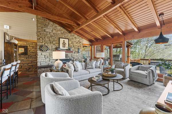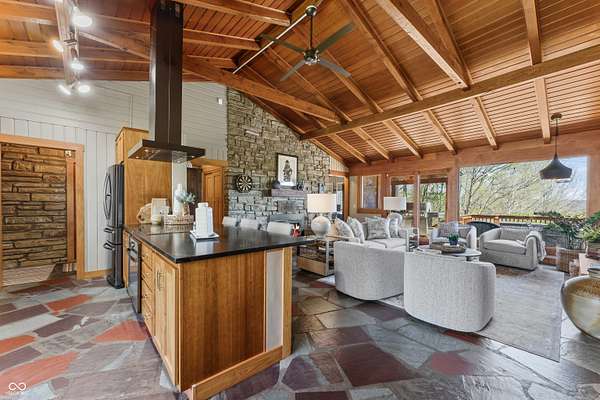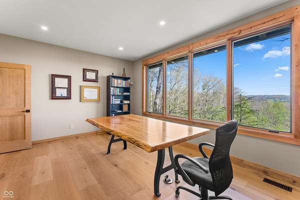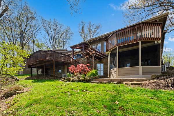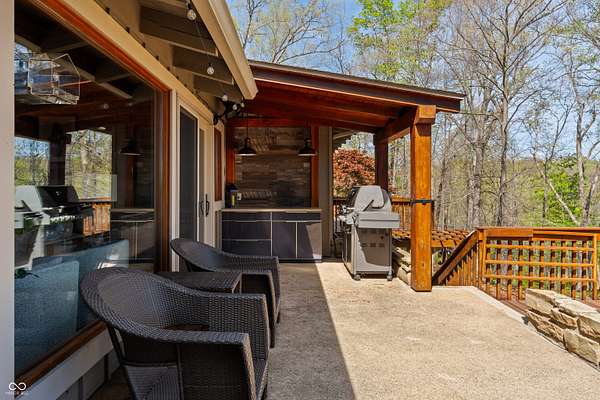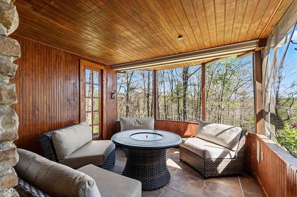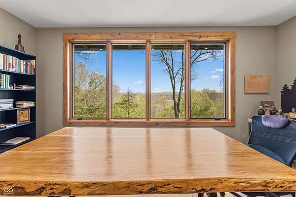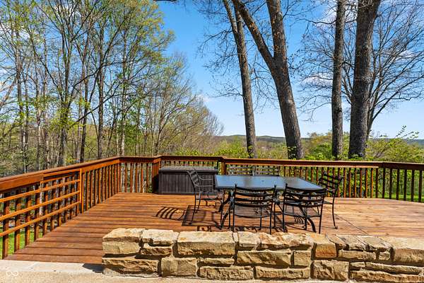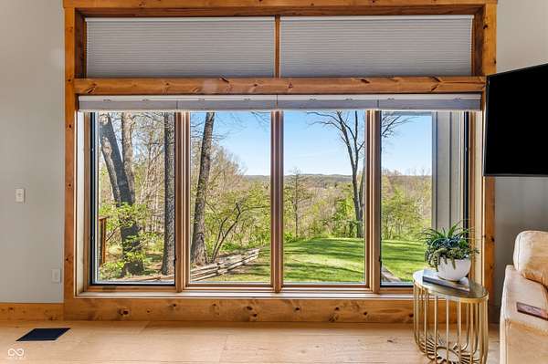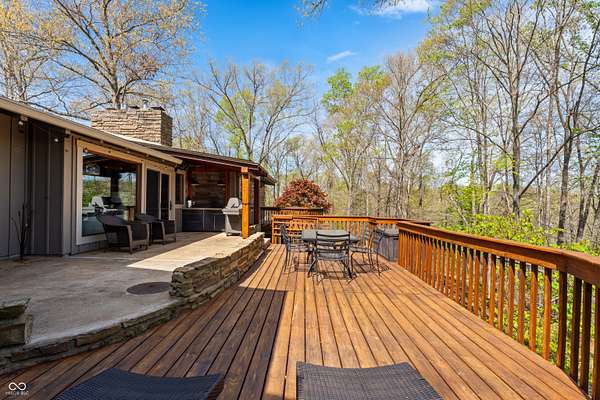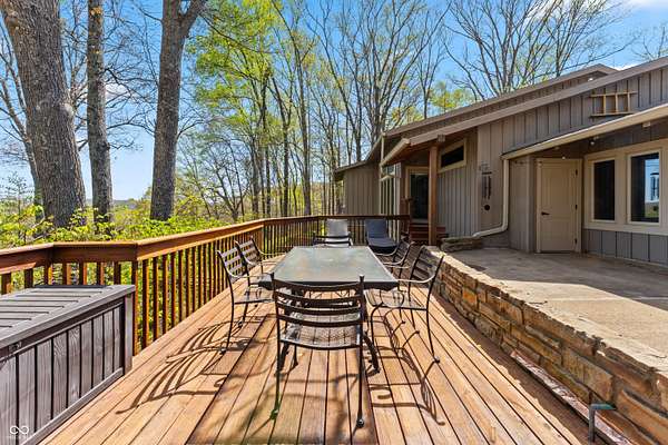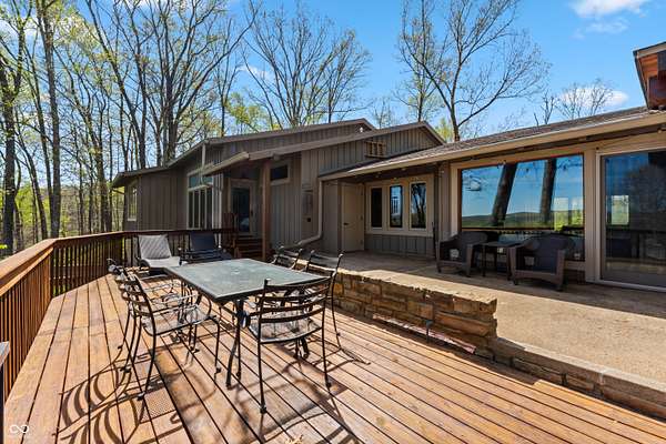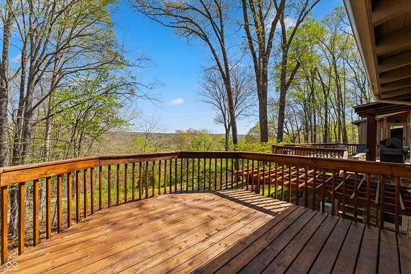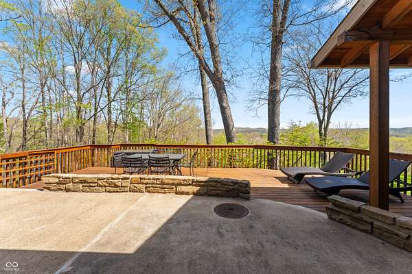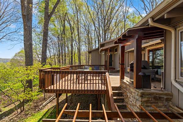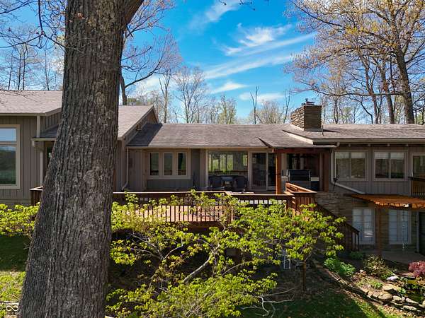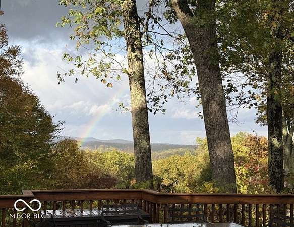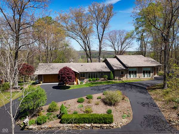 Perched above Little Nashville in the desirable Cloud Crest Subdivision, this stunning 9-acre property offers breathtaking, million-dollar views you won't want to miss. Featuring 3 bedrooms and 3 full baths, this home blends comfort, style, and scenic beauty in every space. The beautifully updated kitchen showcases quartz countertops, stainless steel appliances, and abundant cabinet space-perfect for both everyday living and entertaining. It opens seamlessly to a warm and inviting living room with custom slate floors, a cozy fireplace, and sliding doors leading to an expansive patio and deck complete with outdoor cooking space. The main level also includes a den with a gas fireplace and private deck access, along with a formal dining room ideal for hosting. The spacious primary suite is a true retreat, featuring vaulted ceilings, a double vanity, an oversized walk-in tile shower, and two California Closets. Two additional bedrooms offer vaulted ceilings and generous space, while a large office provides a spectacular view-perfect for working from home. The lower level features a game/rec room with walkout access to a screened porch, plus a dedicated workout area. Additional highlights include two garages with a total of three spaces and beautifully maintained landscaping throughout the property. Access to Salt Creek via a meandering trail on the backside of the property. This is a rare opportunity to own a private retreat with unmatched views just minutes from the charm of Little Nashville.