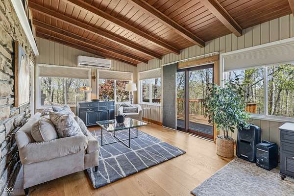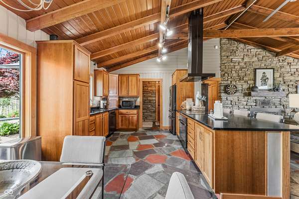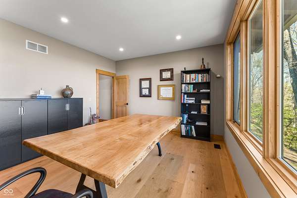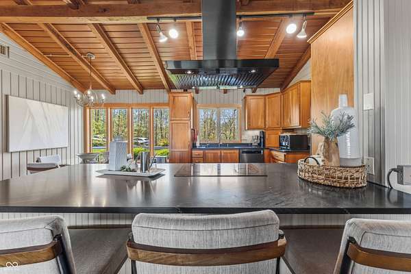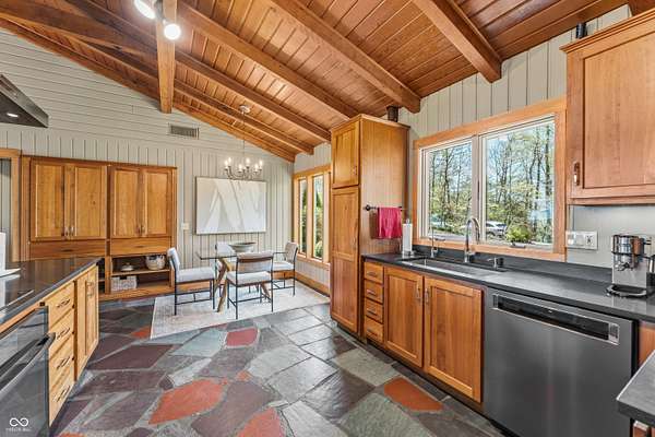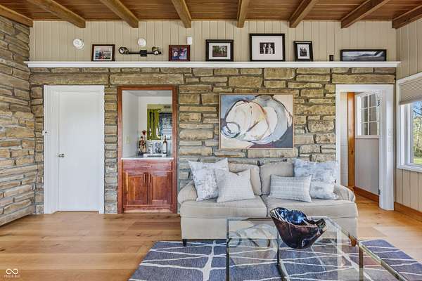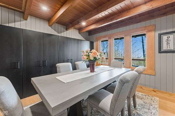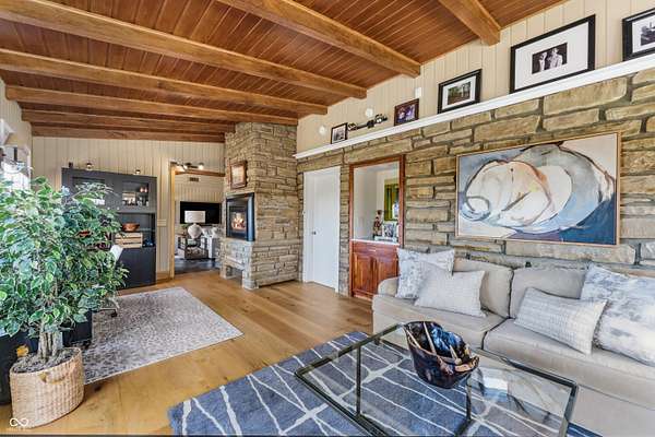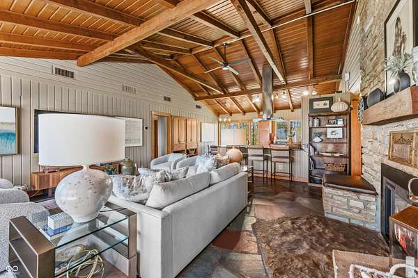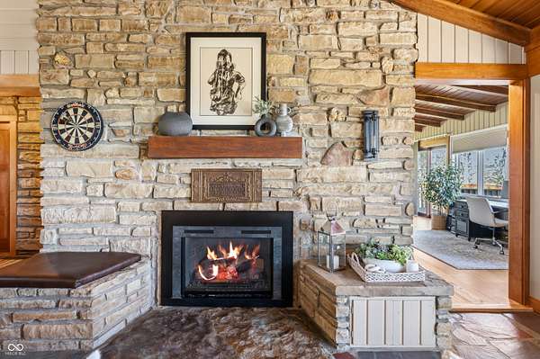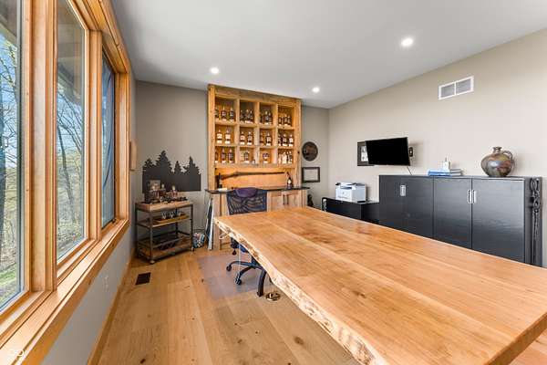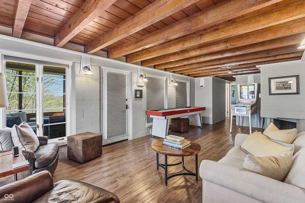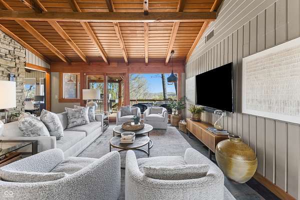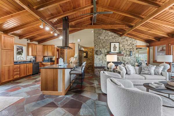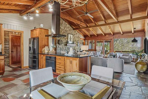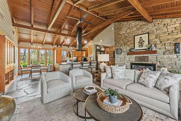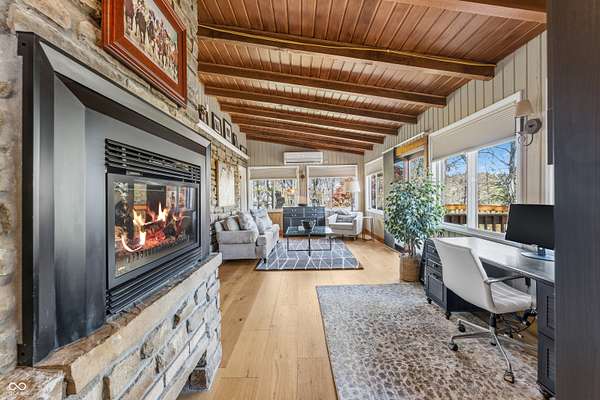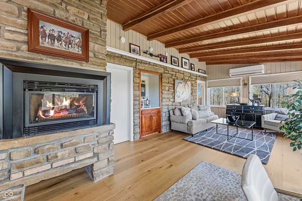 Perched above Little Nashville in the desirable Cloud Crest Subdivision, this stunning 9-acre property offers breathtaking, million-dollar views you won't want to miss. Featuring 3 bedrooms and 3 full baths, this home blends comfort, style, and scenic beauty in every space. The beautifully updated kitchen showcases quartz countertops, stainless steel appliances, and abundant cabinet space-perfect for both everyday living and entertaining. It opens seamlessly to a warm and inviting living room with custom slate floors, a cozy fireplace, and sliding doors leading to an expansive patio and deck complete with outdoor cooking space. The main level also includes a den with a gas fireplace and private deck access, along with a formal dining room ideal for hosting. The spacious primary suite is a true retreat, featuring vaulted ceilings, a double vanity, an oversized walk-in tile shower, and two California Closets. Two additional bedrooms offer vaulted ceilings and generous space, while a large office provides a spectacular view-perfect for working from home. The lower level features a game/rec room with walkout access to a screened porch, plus a dedicated workout area. Additional highlights include two garages with a total of three spaces and beautifully maintained landscaping throughout the property. Access to Salt Creek via a meandering trail on the backside of the property. This is a rare opportunity to own a private retreat with unmatched views just minutes from the charm of Little Nashville.