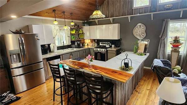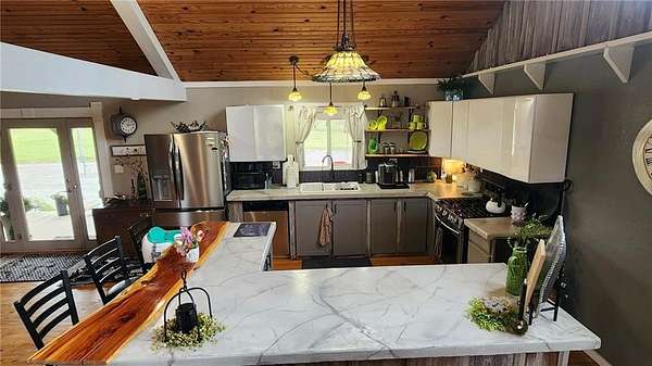 Looking for quiet country living with a stunning home overlooking your own slice of paradise? This is the one! This property includes approximately 80.2 acres with the home overlooking Lightening Creek, with abundant wildlife including some of the best hunting opportunity in Crawford County that the owners watch daily from the covered front porch. The beautifully remodeled 2-bedroom, 2-bath home offers over 1,700 square feet of thoughtfully designed living space, creating a one-of-a-kind retreat. Step inside to an open-concept living, kitchen, and dining area filled with natural light, soaring cathedral ceilings, and hard wood floors-perfect for both relaxing and entertaining. The spacious master suite features a large walk-in closet and a private bath with a walk-in shower. Storage is abundant throughout, with under-stair storage, a pantry, and additional space flanking the expansive loft area. The kitchen truly serves as the heart of the home, complete with a large bar, stainless steel appliances, custom shelving, and plenty of room to gather with family and guests. Step outside to the covered porch and take in the breathtaking views. Lightning Creek winds through 80+ acres of fenced pasture and mixed timber-ideal for cattle, recreation, or hunting. With a history of large deer harvests, this property would also make an incredible hunting lodge or private getaway or add to your farming operation. Don't miss your chance to own this peaceful retreat-schedule your showing today. Seller will consider dividing and selling the home and +- 8 acres and +-72 acres separately.