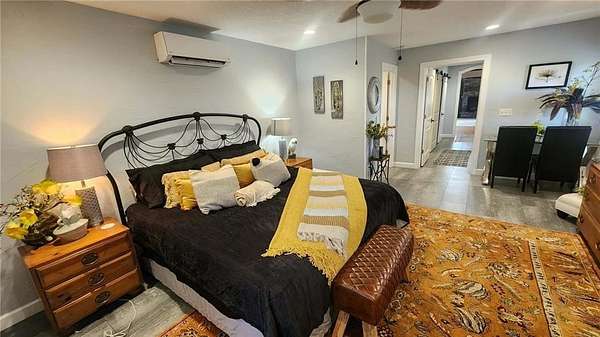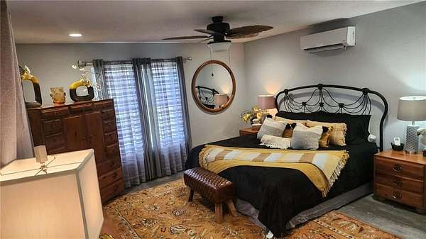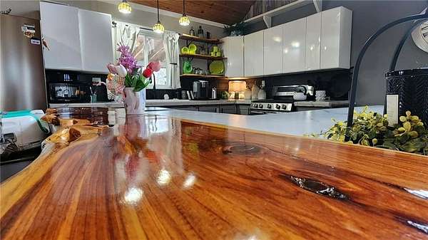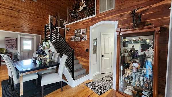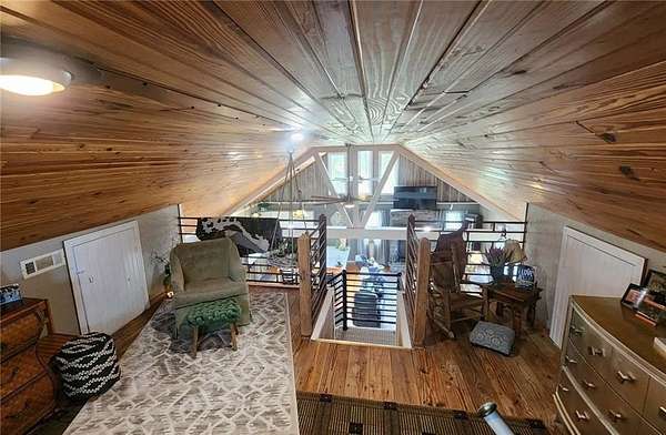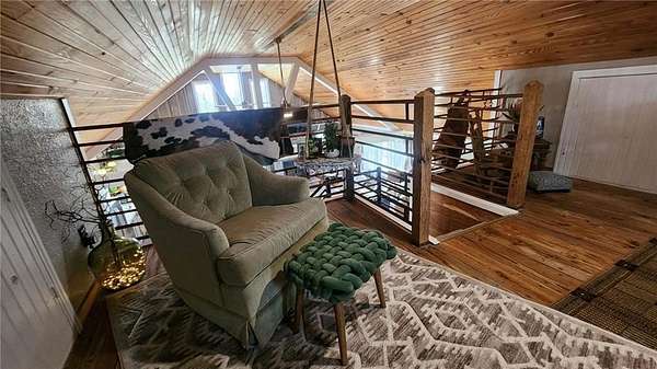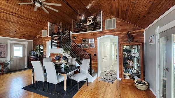 Looking for peaceful country living with a breathtaking view? This one delivers. Set on approximately 7.6 acres overlooking Lightning Creek, this property offers your own private retreat with abundant wildlife -often enjoyed right from the covered front porch. The beautifully remodeled 2-bedroom, 2-bath home features over 1,700 square feet of thoughtfully designed living space. Inside, you'll find an open-concept layout with soaring cathedral ceilings, hardwood floors, and plenty of natural light-perfect for both relaxing and entertaining. The spacious primary suite includes a large walk-in closet and a private bath with a walk-in shower. You'll also appreciate the ample storage throughout, including under-stair space, a pantry, and additional storage around the loft area. At the center of it all is the kitchen, complete with a large bar, stainless steel appliances, custom shelving, and plenty of room to gather.
