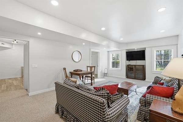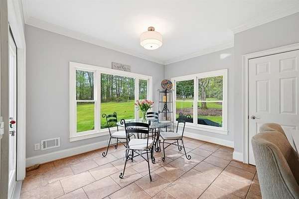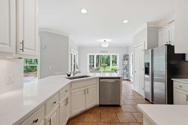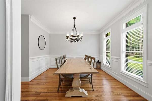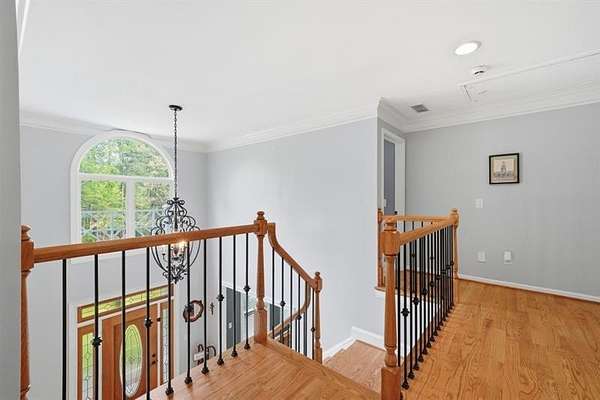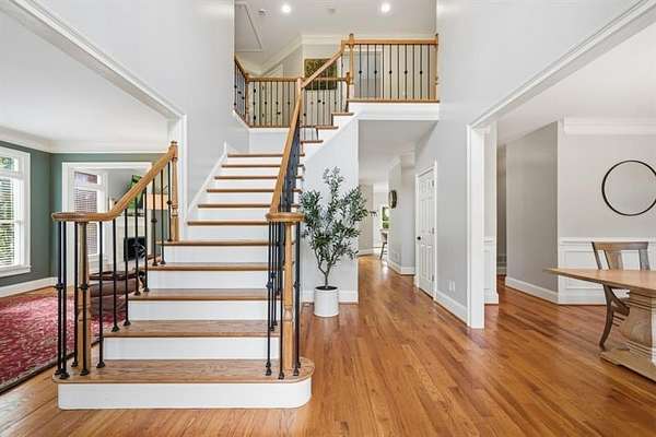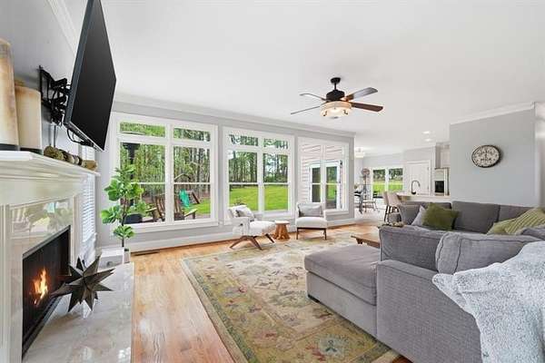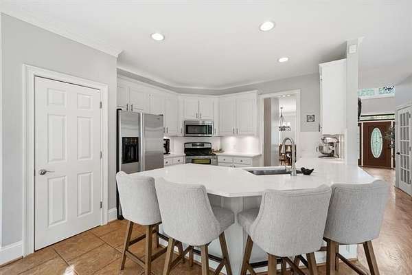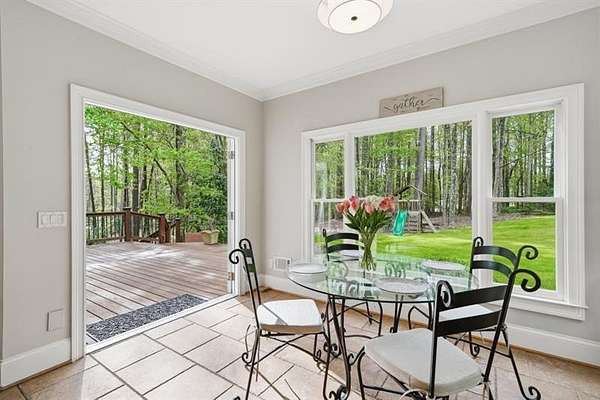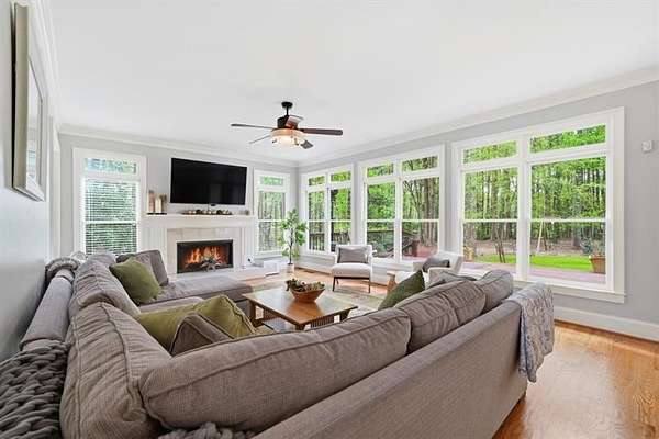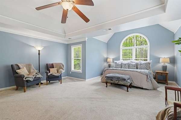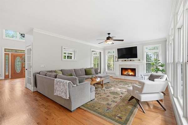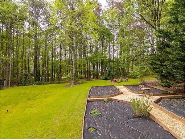 Set on 2 acres, this one-of-a-kind estate offers a rare blend of luxury, tranquility, and thoughtful design, featuring a three-sided brick exterior with durable Hardiplank siding. Hardwood floors extend throughout the main level & upper landing, while abundant natural light fills the home. Framed by wraparound windows, the living area, kitchen (with updated countertops, farmhouse sink, and breakfast nook) captures views of the backyard, vegetable garden & fruit trees. The kitchen features a five-burner gas stove with dual ovens. The living room fireplace offers a gas starter with the option to burn real wood. The oversized primary bedroom features a tray ceiling, space for a seating area, & a light-filled nook ideal for bed placement. The spa-like bath includes an oversized tiled shower with dual shower heads & wand, soaking tub with handheld sprayer, & dual vanities. The primary closet is an exceptional oversized multi-space wardrobe with two distinct sections, one offering the feel of a private dressing room ideal for a nursery, sitting area, or flex space. Both include built-in shelving with adjustable attachments, soft-close drawers, and extended hanging space with approximately 15+ linear feet each. The upstairs bedrooms also have oversized walk-in closets. One includes a private bath, while the other two share a Jack-and-Jill bath with separate vanities. An upstairs laundry area & thoughtful storage enhance functionality. The basement includes a fifth bedroom, office or flex space, a media/play room with potential for in-saw suite. It also features a built-in kennel area that could be converted to a reading nook or additional storage. The newly painted garage offers ample space & easy access to the kitchen. French double doors off the kitchen lead to a huge custom-built tiered deck creating seamless indoor & outdoor living, ideal for gatherings. The deck is pre-wired & plumbed for an outdoor kitchen and designed for a future pool. The private wooded backyard trail offers a relaxing peaceful nature walk as well as a large bonfire pit at the far end of the property providing the perfect setting for entertaining year-round. Close proximity to top rated schools, Hendricks middle school within walking distance, and West Forsyth High School only 1.7 miles. Adjacent to Milton & Alpharetta, this home is close to shopping, dining, Vickery Village Cumming City Center, Midway Park, UFA Soccer Fields , Sawnee Mountain and the Big Creek Greenway. This custom-built home has been meticulously maintained, with no expense spared in updates & care. Located in a unique lake neighborhood with a large open common area where you can enjoy fishing from the shoreline, gazebo or your own kayak/fishing boat. This property offers exceptional space and a lifestyle opportunity that is truly a must-see.