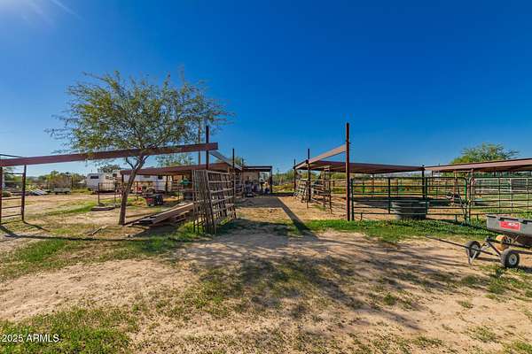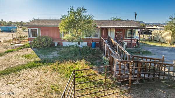 Rare opportunity! Sits on a HUGE 3-acre corner lot, this exceptional horse property combines space, comfort, and functionality. The manufactured home features a ramp entry for convenience. Inside, you'll find a large living room with abundant natural light & vaulted ceilings. The eat-in kitchen has SS appliances, a plethora of cabinetry, & a center island. The main bedroom boasts a walk-in closet and an ensuite with dual sinks & separate tub/shower. One bedroom, with sliding doors to the back, can be an office. The covered deck is the ideal spot to relax! The property also offers stalls, corral, arena, and storage sheds, providing everything needed for your horses & animals. Plenty of room for parking! Enjoy the neighborhood's tranquility & mountain views. Near the Hwy 347! Make it yours!
