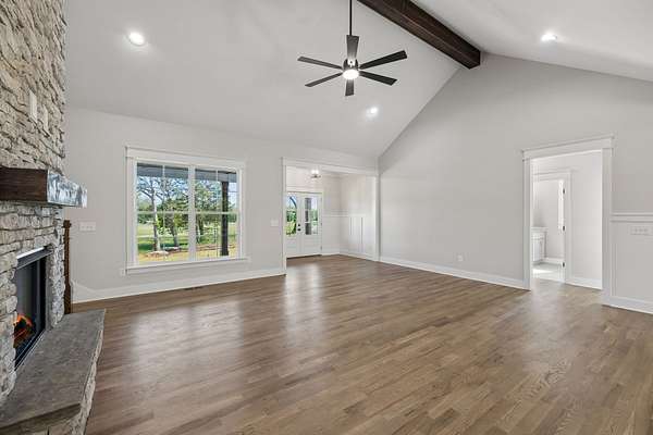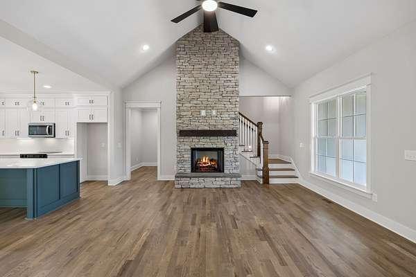 BRAND NEW CONSTRUCTION! Welcome to 4881 Woodbury Pike, located in the rapidly expanding community of Murfreesboro, Tennessee. This beautifully crafted home showcases exceptional quality and meticulous attention to detail throughout. Enter from the inviting covered front porch into a spacious foyer that opens to a bright living room with soaring vaulted ceilings and a warm, inviting fireplace. The open-concept design flows effortlessly into a custom kitchen complete with granite countertops, handcrafted cabinetry, and an oversized island perfect for entertaining. This thoughtfully designed two-level home features generously sized bedrooms, including an elegant primary suite with detailed ceiling work and a spa-inspired private bath.