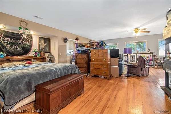 REDUCED! REDUCED MOTIVATED SELLER!! Sandy Beach Shoreline,, Enjoy Summer fun on the lake! 40 X 24 Pole Barn with Plenty of storage room for Equipment, Tall double voors for drive thru with its own electric & gas and plumbed for half bath. 35 Ft pad for RV Storage Plus Approx 2000 sq ft with 3 poss 5 bedrooms 3 full baths and 2 kitchens could be in law and/ or teen quarters plenty of room for everyone ! Home sits on extra large Double lot! great Income property Lets someone else make your house payment! Live in one side and rent out the other area. or perfect to rent out 1area as Airb&B. Home features Sauna, Field stone fireplace with beautiful mantel and hearth, hardwood floors, New furnace 2023 Plenty fo Decking for entertaining or just relaxing Coi pond (does not include fish) deck, basement with walkout door and egress window possible 3rd level. Per seller main level no load bearing walls so easy to customize floor plan. 4 season room with panoramic viewa of lake for Awesome Sunrise and Sunset views Decking for relaxing after a long day or perfect for entertaining! Privacy fencing Pole barn with workshop a true mechanics dream! Lake toys pontoon, 2 kayaks, row boat etc maybe included in Sale. Plenty of parking with Second drive way to pole barn off of Fenmore Ave.