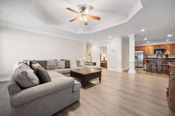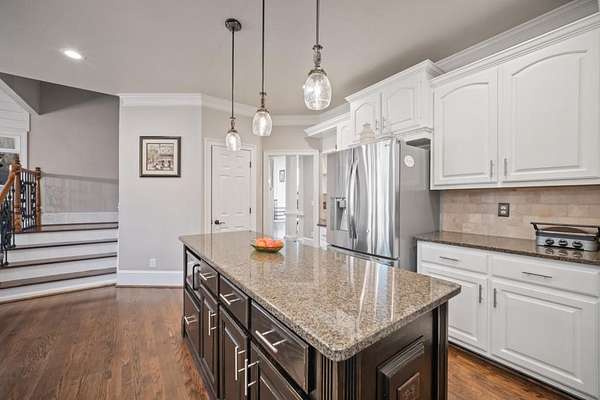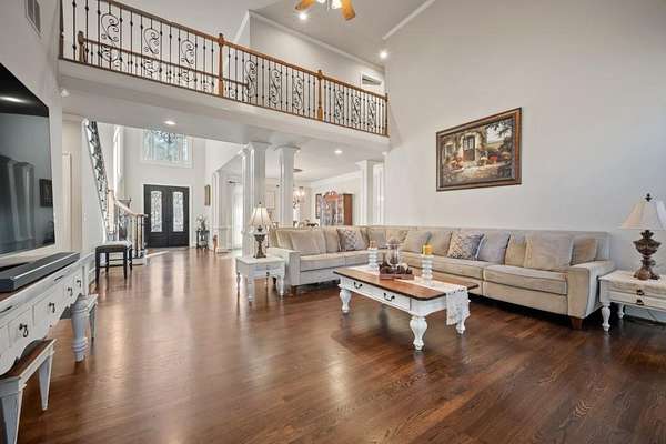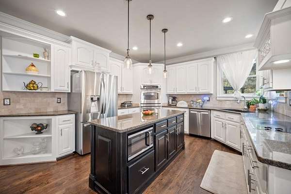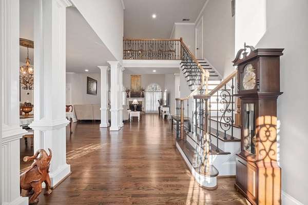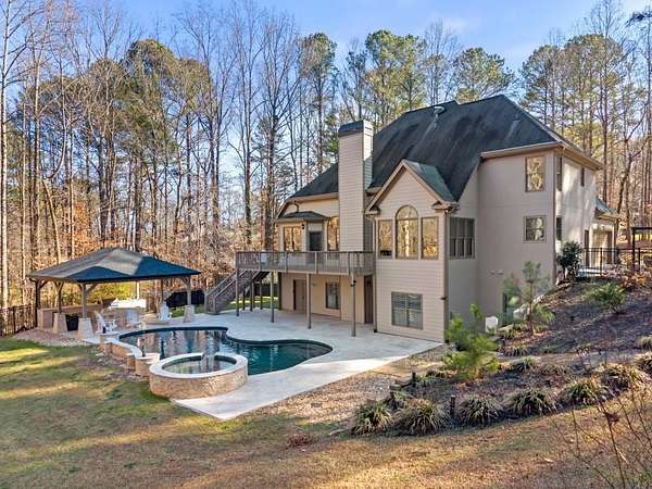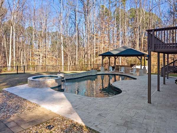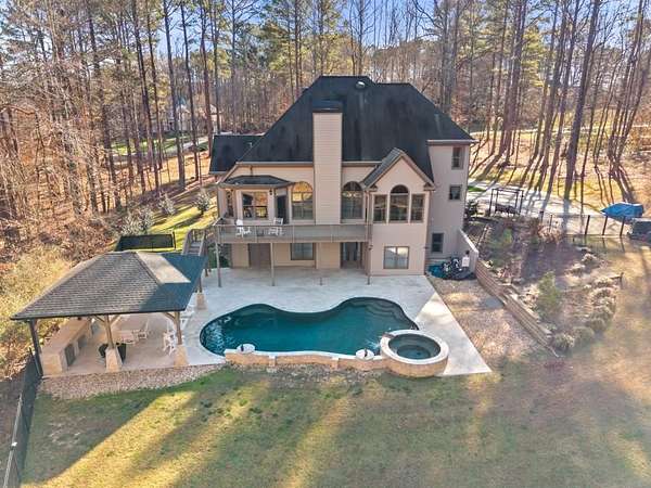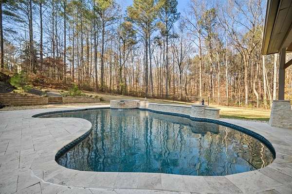 Set on 2.12 private acres in West Forsyth, this professionally designed estate offers an exceptional blend of refined interiors and resort-style outdoor living-an entertainer's dream and a true private retreat. The outdoor spaces are the heart of this property. Step out to a stunning saltwater pool, thoughtfully designed with an 8-foot deep end, surrounded by natural rock accents that create a serene, upscale atmosphere. An integrated hot tub spills gracefully into the pool, adding both visual impact and relaxation. Overlooking the pool is a beautifully crafted cabana with a built-in grilling station and outdoor kitchen, making this space ideal for hosting gatherings, enjoying summer evenings, or unwinding in complete privacy. The finished basement opens directly to the terrace level, creating seamless indoor-outdoor flow to the pool and entertainment areas. Inside, artisan front doors welcome you into a dramatic two-story foyer accented by designer lighting and rich hardwood floors. The main level offers a well-balanced layout with a formal dining room, office or formal living space, expansive great room with a stone fireplace, breakfast nook, and a custom chef's kitchen featuring granite countertops, a large island, walk-in pantry, and abundant natural light. A dual staircase adds architectural interest and convenience. The primary suite on the main level features vaulted ceilings, dual vanities, a soaking tub, frameless shower, and a private water closet. A well-appointed laundry room with built-in cabinetry and gas or electric dryer hookups adds everyday functionality, along with a conveniently located half bath. Upstairs, a catwalk-style hallway overlooks the foyer and great room, creating a palazzo-inspired feel. The upper level includes multiple bedrooms, a Jack-and-Jill bath with double vanities, and an additional bedroom with a private en suite. The full basement expands the home's versatility, offering a second kitchen with refrigerator and microwave, living space, bedrooms, and a full bath-perfect for guests, extended family, or an in-law retreat. Additional unfinished basement space provides even more potential for future expansion or customization. With its resort-inspired outdoor amenities, thoughtful design, and private estate setting, this home delivers luxury living with space to gather, relax, and entertain-inside and out.