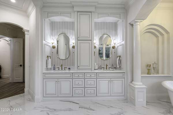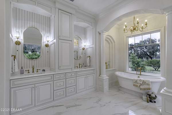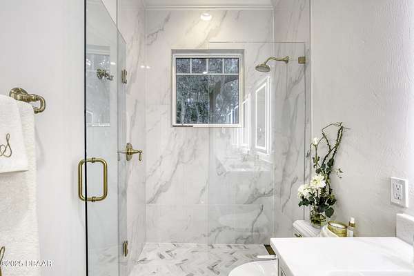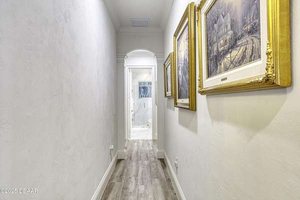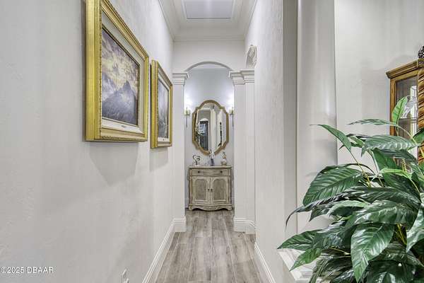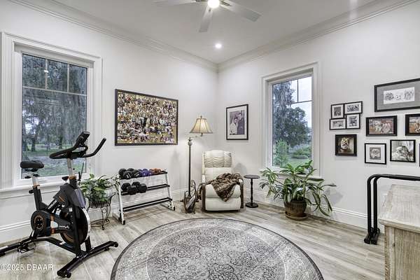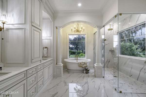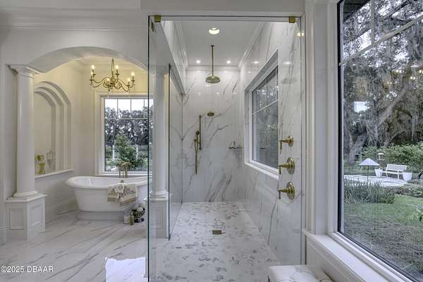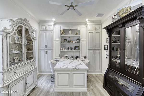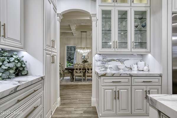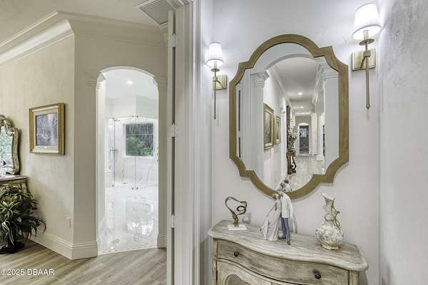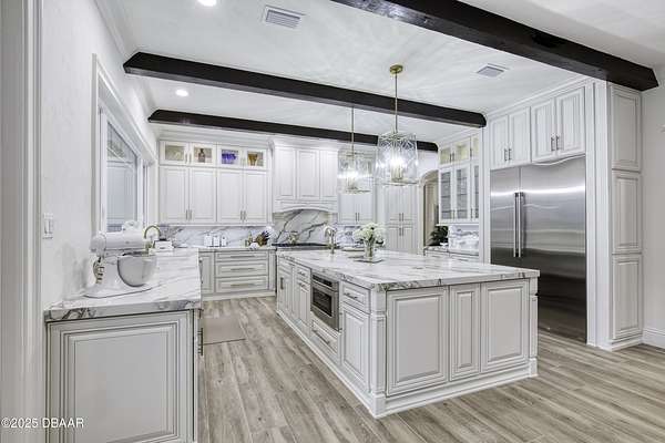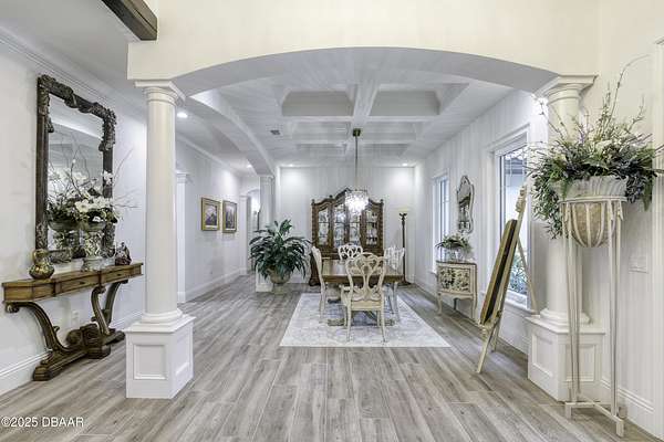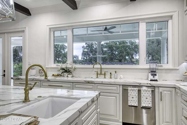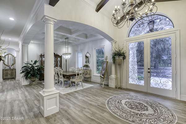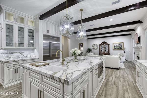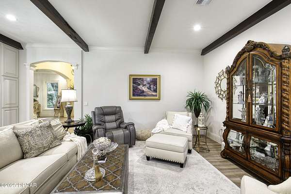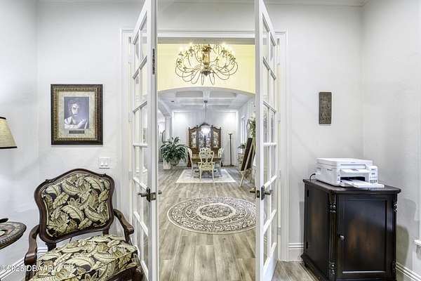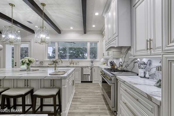 Every so often, a property comes along that is so spectacular and awe-inspiring, words simply can't do it justice. The beauty of this 11.37-acre estate, with its rolling grassy knolls peppered with centuries-old Live Oak trees, gardens of Bottle Brush and Holly trees, and fragrant hedges of night-blooming Jasmine, is a rare find. This is one of those extraordinary places. The home, with 3,310 square feet of conditioned living space, was completely rebuilt from the ground up. The renovation involved stripping the house down to its foundation and solid block walls, then meticulously crafting it with the highest quality materials and construction methods. Every detail, from the architecture to the finishes, exudes elegance and sophistication. Set against this breathtaking landscape, the property features a private in-ground pool, a charming stand-alone pergola, a five-stall barn, four grazing paddocks, and a tranquil pond in the distance-each element contributing to the home's rare appeal. The property is fully gated, with security cameras surrounding the exterior, and is pre-wired for a whole-home generator, offering peace of mind and privacy in a setting of unparalleled tranquility. A long, winding driveway leads to a circular motor court, crowned by an elegant oval fountain. From there, you ascend a set of travertine steps to the double glass and wrought-iron French entry doors, topped by an eyebrow window, and step into a three-bedroom, two-and-a-half-bath masterpiece that seamlessly blends modern design with rustic charm. To the left of the entry foyer, you'll find a home office featuring a two-sided solid quartz desk and a full wall of custom-built cabinetry. To the right, the formal dining room overlooks the fountain and majestic Oak trees, with a coffered ceiling adding a touch of sophistication. Throughout the common areas, wood-grained plank ceramic tiles provide a warm and inviting atmosphere. The bathrooms are finished with large-format porcelain tile, each with decorative tile transitions. The chef's kitchen is a standout, featuring top-of-the-line Monogram Energy Star appliances, ample quartz countertops, and a hidden pantry that will delight any culinary enthusiast. Soft-close drawers and doors, pull-out shelving in the lower cabinets, and 42" tall upper cabinets with a crowning row of glass display shelves add functionality and beauty. The center island is equipped with a prep sink, microwave, under-counter storage, and pop-up electrical outlets. The kitchen also boasts a six-burner gas stove with a griddle, split ovens, and a side-by-side fridge with an automatic ice drawer and always-full filtered water pitcher. The adjacent living room, complete with an electric fireplace, opens onto a back patio adorned with white travertine and offering sweeping views of the pool, brick-paver surround, stand-alone pergola, and the distant pond. A pavered brick walkway leads to a hidden garden tucked away to the south, further enhancing the sense of peace and seclusion. Two interconnecting wells service the home's water supply and the 11 irrigation zones across the property. These are housed in a pump house, which also includes a water purification system and water softener. The primary suite overlooks the private garden and features its own mini-split AC system for personalized comfort. The walk-in closet, fully built-out and spacious, is sure to please even the most discerning fashion lover. The primary bath offers a spa-like retreat with a glassed-in shower complete with overhead rainfall, wall, and handheld spray fixtures, as well as a separate soaking tub for ultimate relaxation. Additional features of this home include a dedicated laundry room with a stacking LG washer and dryer, a craft room for creative pursuits, two new pool pumps, a new 5-ton Bosch HVAC system, a 500-gallon above-ground propane tank, a tankless Rinnai water heater, and programmable Bosch thermostats. This offering comes blueprints and permit to build