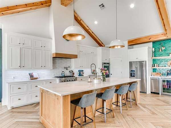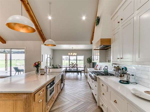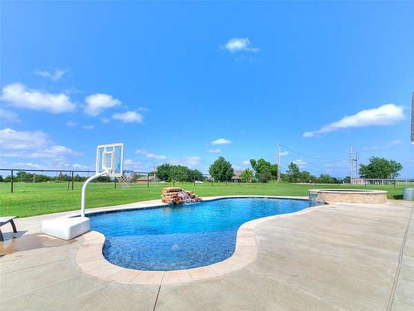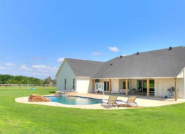 Embrace the best of country living in this modern farmhouse-style custom built home set on 3.77 acres with trees. This property shows attention to detail from the sprawling front porch and cedar columns to the inside details & amenities that set it apart from standard builds. The residence blends indoor and outdoor living seamlessly with expansive windows that fill the home with natural light. Inside the open concept layout with spacious and open living area, cozy fireplace, gourmet kitchen and roomy dining area, provides the perfect setting for hosting family gatherings or entertaining. The home has 4 bedrooms and 5.5 baths, all bedrooms have closets with built-ins. Additional features include a Study and a Pantry that is also a safe room, bonus room upstairs with a full bath, tankless water heater and much more! A large, covered patio opens to the stunning heated pool complete with waterfall and hot tub. This area is a wonderful place to unwind and relax or have an outdoor get together; pool area has a private full bathroom. You must see this home to appreciate all of its fine qualities.