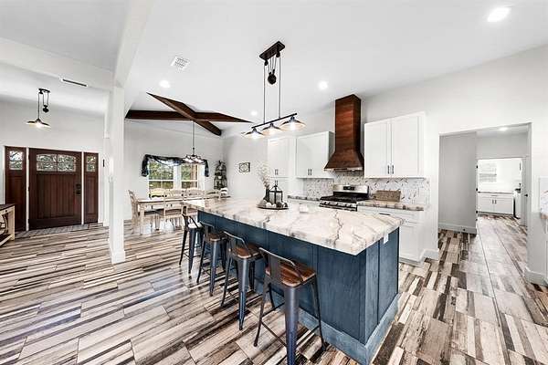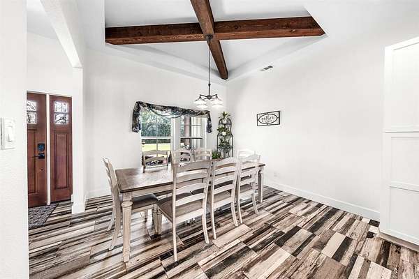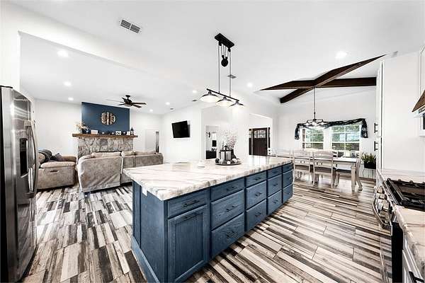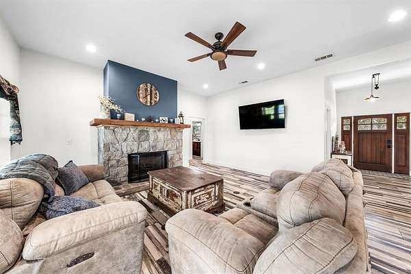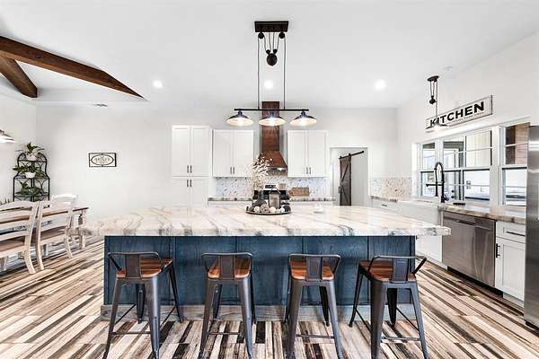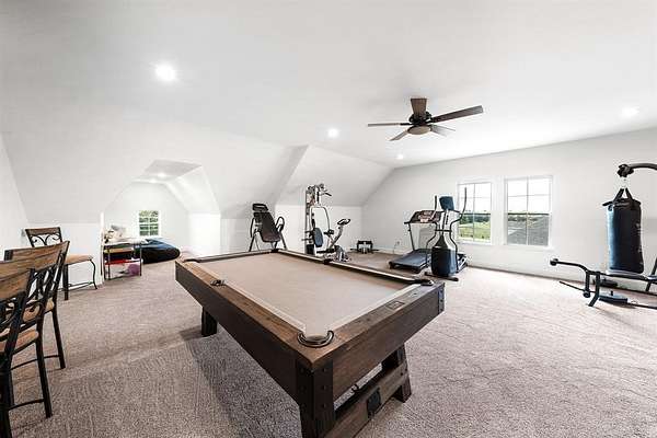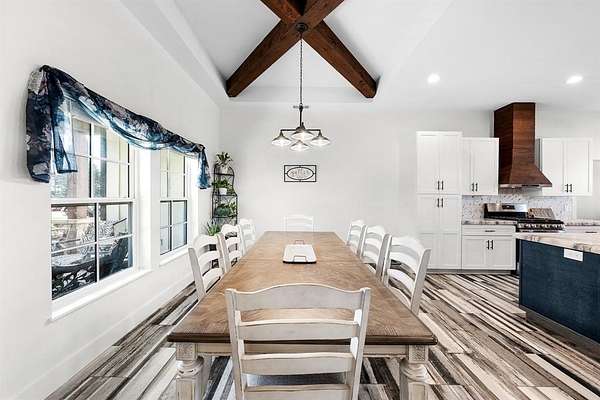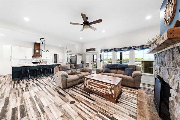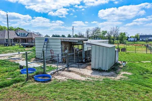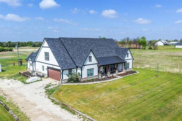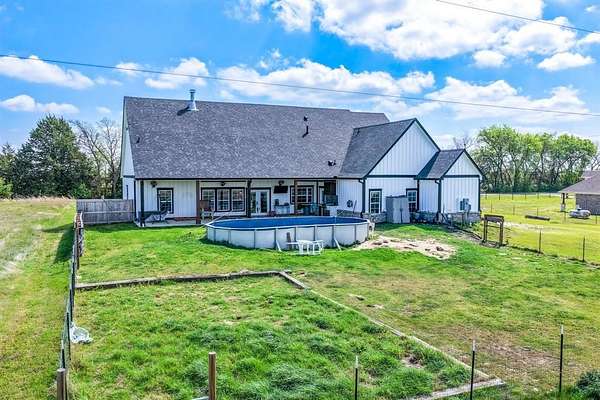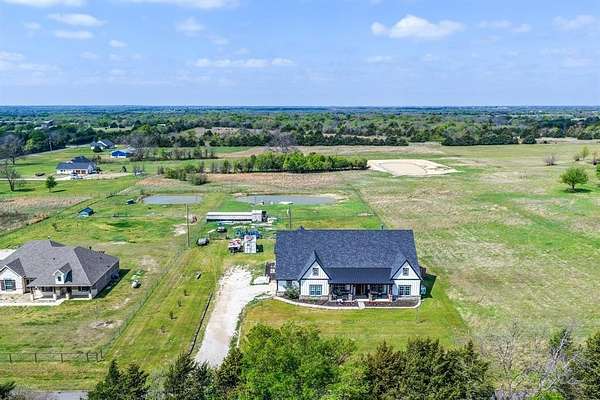 Experience the perfect blend of modern luxury and peaceful country living in this stunning modern farmhouse situated on 1.5 beautifully maintained acres in Celeste, Texas. Built in 2022, this thoughtfully designed 4 bedroom home offers 2 full baths and 2 half baths, along with a private office and an expansive upstairs game room with a dedicated hobby nook ideal for both everyday living and entertaining. The open concept floorplan features vaulted ceilings, decorative, custom lighting, and a spacious living area anchored by a cozy stone fireplace, seamlessly flowing into a chef’s kitchen complete with a large island, farm sink, unique custom countertops, stainless steel appliances including a custom vent hood, walk-in pantry with sliding barn door, and eat-in dining space. The private primary suite is a true retreat, featuring a spa like ensuite bath with separate vanities, soaking tub, separate double-entry walk in shower with body sprays, and a custom his & her walk-in closet system. Step outside and enjoy true Texas outdoor living with a covered front porch featuring custom lighting, back patio with a fully equipped outdoor kitchen area featuring a built-in BBQ, sink, and mini fridge perfect for hosting gatherings. The property is fully equipped for a rural lifestyle with cross fencing, a pond, garden space, chicken coop with utilities, and a dog run. Additional highlights include a private above-ground pool, in ground storm shelter, spray foam insulation for energy efficiency, three separate HVAC systems, and a decked attic for exceptional storage. A prepared building pad with utilities already in place offers endless possibilities for a future shop or guest house. With no known restrictions, RV boat parking, and scenic pasture views, this one of a kind property delivers the ultimate modern farmhouse lifestyle with room to grow!
