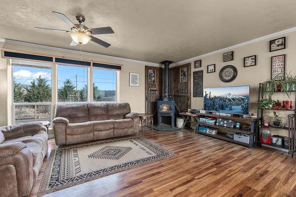 Looking for the perfect hobby farm? This incredible 2.3 acre property with 2 acres of OID water rights offers the ideal combination of comfort, space and functionality for country living. Built in 2014, the 1,782 sqft home features 3 bedrooms, and 2 bathrooms with a spacious open floor plan designed for everyday living and entertaining. The large kitchen showcases beautiful hickory cabinets, ample counter space, a generous pantry, and flows seamlessly into the living area. A large mud room provides the perfect transition space for country living, keeping everything organized after time spent outdoors. Stay cozy during cooler months as you relax in front of the woodstove, enjoying the peaceful rural setting while your animals are comfortable housed nearby in their protected stalls. Plus, a massive 3,900 sqft shop, complete with concrete floor and power.