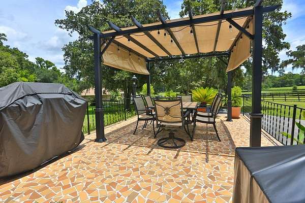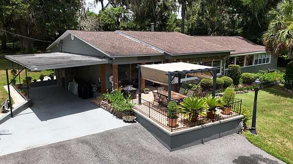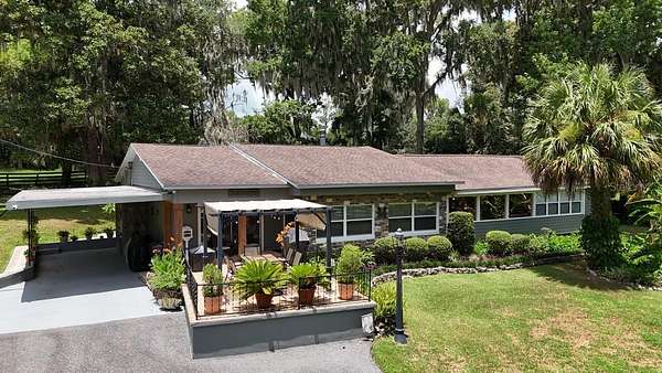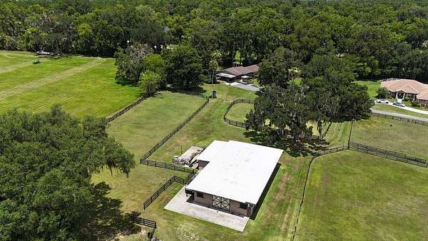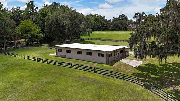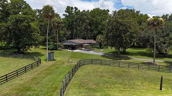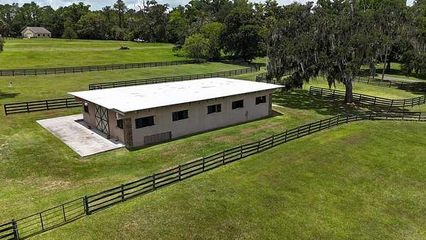 For horse enthusiasts, the property includes a center aisle concrete block barn with 8 stalls, a separate workshop/storage area, and a large parking pad for equipment. The property is perfect for equestrians, offering lush pastures. Its convenient location provides easy access to WEC, The Florida Horse Park, and Greenways and Trails an exceptional countryside estate just 3 miles from town amenities.
