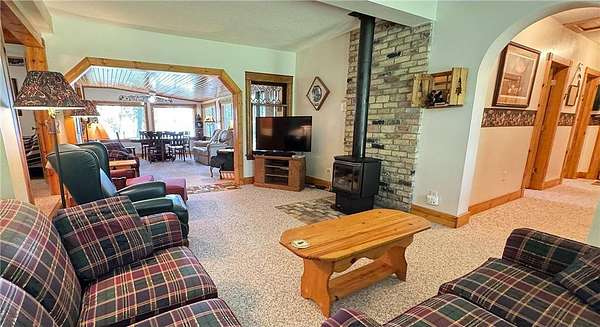 Incredible opportunity to have it all on Round Lake! East facing lot is 1.65 acres in size with gradual elevation to 100’ of excellent sand shoreline! A great place to catch the awe-inspiring sunrises and enjoy excellent swimming with the amazing sand bottom. The nicely appointed cabin has plenty of room for all and features a living room with free standing, gas, Heat & Glo fireplace, a family room, kitchen with informal dining, 4 bedrooms, a large full bath and additional ¾ bath, large laundry room and foyer. The partial basement area houses the well pressure tank and has plenty of storage space. Don’t miss the 40x48 pole building, 14x24 detached garage and 8x10 storage shed! Property is being sold “turn-key”, as is, including furnishings, kitchenware, linens, dock, 2001 Crestliner Sport LX pontoon with 40HP Evinrude motor, electric pontoon lift, pontoon trailer, 2 additional boat lifts, John Deere lawn tractor with leaf vacuum and trailer, patio set, grill, lake toys, etc. It doesn’t get any better than this with an excellent lake featuring beautiful clear water, sand shore and everything you need to start making your dreams come true! Fiber internet is available at the street through Tremolo Communications.