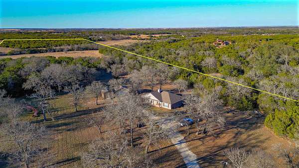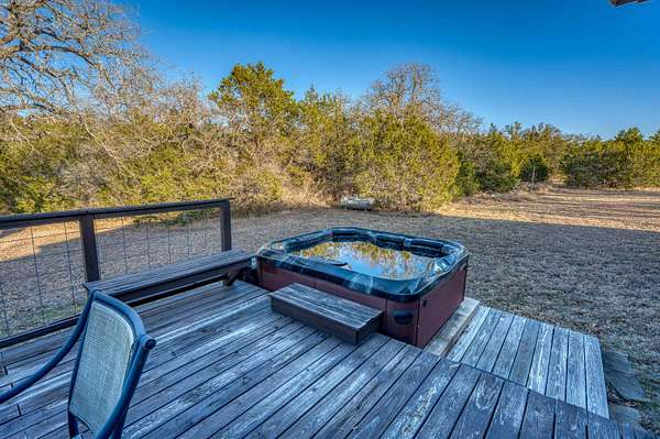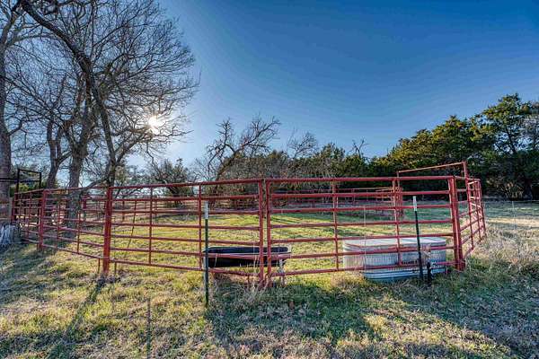 Great location being just six miles northwest of Bertram. At the end of the road seclusion. Property has gently rolling hills that is loaded with Oak and Elm trees with lots of wildlife. Ag exempt, fully fenced and crossed fence for livestock with a cattle guard and two gate entries. Seasonal creek runs across the back of the 25 acres. No flood plain. Cattle working pens set up with two water troughs. This place is set up for fun. There is a 420 foot zip line with entry and exit platforms. ATV trails cut through the back part of the ranch. Great 14' x 24' insulated party shed complete with a bar. And when you want to relax, hang out in the large hot tub next to the covered deck in the back of the home. Enjoy the quietness hearing nature around you and seeing stars you can't see in the big cities. Have lots of family & friends? Let them come to stay a while with an RV hook up set up with elec., water & sewer. The home was built in 2017, 3 bedroom, 2 bath with living, kitchen and dining combination. Fireplace to enjoy in the winter. Central heat and air. 2025 property taxes were $4,953. Conveniently located only 6 minutes to Bertram, 20 minutes to Georgetown, 45 minutes to Austin and 30 minutes to the lakes. See attached documents