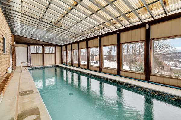 This is NOT a set price and does not reflect Auction price. This property is being sold through an online-only reserve auction scheduled to start to soft close on Sunday, March 1st at 5:00 PM, with a reserve price of $400,000. Rare opportunity to own a truly one of a kind custom home with a separate lot with utilities. Conveniently located just minutes off I-75, this exceptional property offers privacy, character, and breathtaking views. The home features impressive 2x12 ceiling rafters, soaring 23-foot ceilings in the main living area, and dramatic floor to ceiling windows that flood the space with natural light. Real hardwood flooring runs throughout, and the staircase is supported by a stunning solid ash log craned into place as a true architectural statement. Built with efficiency and security in mind, the home includes extra insulation and a reinforced safety bunker with 7-inch poured rebar concrete walls and 4-foot bulletproof doors. The indoor in-ground pool is heated by a buried, paid-for 500-gallon propane tank. Two mini bars and a beautiful kitchen with granite countertops make this home ideal for entertaining. The property itself is equally impressive: fully fenced with abundant wildlife, a private pond, irrigation system, pergola, and outdoor grilling area. There is an additional build-ready lot with existing utilities, multiple potential building sites, and possible logging opportunities. The possibilities are truly endless. A separate building includes 240V service. Pre-auction offers are encouraged, and buyers are advised to complete all due diligence prior to bidding. Don't miss this rare opportunity to schedule your private showing today and prepare to bid online!
