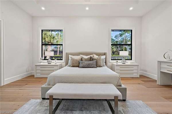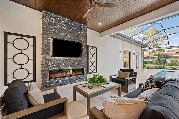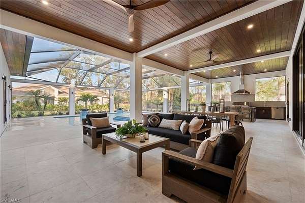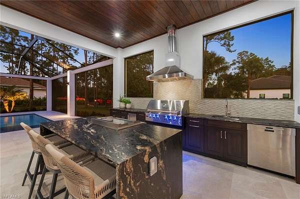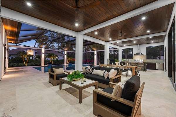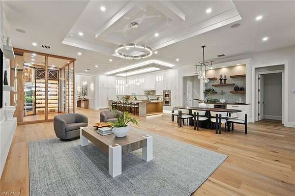 A rare opportunity to own a newly completed estate in the highly desirable Logan Woods community, where privacy and space meet the convenience of in-town living. Situated on a generous homesite and completed in 2026, this exceptional new construction residence showcases luxury craftsmanship, high-end finishes, and expansive living spaces designed for both everyday comfort and grand entertaining. The thoughtfully designed floor plan offers an abundance of living space, featuring multiple spacious bedrooms, a private guest suite, and a dedicated exercise room. At the heart of the home, the chef's kitchen is a true showpiece, appointed with top-of-the-line appliances, custom cabinetry, and stunning designer countertops, all flowing seamlessly into the main living areas. A spectacular, climate-controlled wine room serves as a dramatic focal point and conversation piece, perfect for showcasing a prized collection while adding architectural interest and sophistication to the home. Designed to embrace the Florida lifestyle, the expansive outdoor living area is an entertainer's dream. The resort-style pool and spa are surrounded by generous covered living spaces, multiple dining areas, and a fully equipped outdoor kitchen, creating the perfect setting for hosting gatherings or enjoying peaceful evenings in your own private retreat. Hosting family and friends is a breeze with separate full residence with Garage on the property. Also, the perfect set up for extended family or aging parents. Offering the best of both worlds, this Logan Woods estate provides the tranquility of estate living with close proximity to Naples' world-class dining, shopping, beaches, and everyday conveniences.