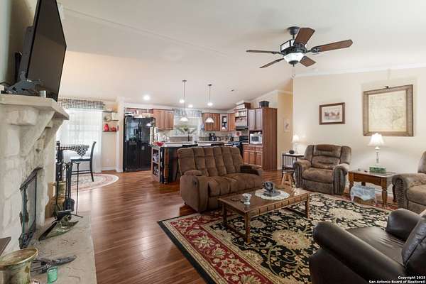 Experience true freedom on this stunning 10-acre unrestricted property, featuring a spacious 3-bed, 3-bath modular home designed with two primary bedrooms, perfect for multi-generational living, guests, or rental potential. Bring your dreams, your animals, and your lifestyle. Horses are welcome, and the open acreage provides plenty of room for barns, arenas, gardens, or future builds. With no HOA and no restrictions, you're free to create the life you want. The home is your private sanctuary, nestled on a serene 10-acre canvas with a pond, and a sprawling custom-built back patio perfect for sunset dinners, stargazing, or morning coffee in the fresh country air. Inside, enjoy all the modern comforts, a fireplace that heats both living room and den, along with optical fiber internet that keeps you connected effortlessly. Whether you're working from home or streaming your favorite shows. Enjoy a mobile home space with a separate electric meter and a rock foundation for the mobile home. for effortless hosting or extra income, plus a charming efficiency cabin with a front porch, electricity and air conditioning. ideal for welcoming guests, generating rental income, or creating your own private getaway. Enjoy peaceful sunsets, wide-open views, and limitless possibilities. Properties like this are rare! This is your chance to live, build, and grow without limits.