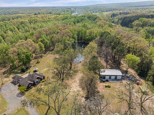 Are you dreaming about 29 acres of land outside of city limits where life slows down just a little, with peaceful views and room to truly spread out. This property offers a 3-bedroom, 3.5-bathroom home built in 2010 and offers 2,400 square feet designed for comfortable, everyday living. This turn-key home is so great and features a brand-new central heat and air system and a roof replaced in 2016, major updates have already been taken care of. This open-concept floorplan and kitchen is wonderful for entertaining guests and hosting gatherings! The land tells its own story with a large, stocked pond, a creek, mature oak trees over 100 years old, along with pecan and walnut trees, blackberry bushes, and trails throughout the property. The property includes a 60x30 insulated shop with spray foam insulation, which includes central heat and air, a half bathroom, and an attached 1 bedroom, 1 bath apartment complete with full kitchen, laundry, spiral staircase, and two minimally used mini split systems. Additional features include electric, water, and septic already in place for a mobile home or future build, as well as a storm shelter, large carport area, and large pole barn. MUST SEE!