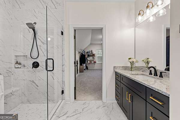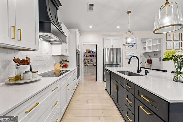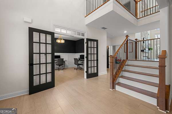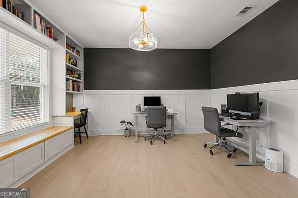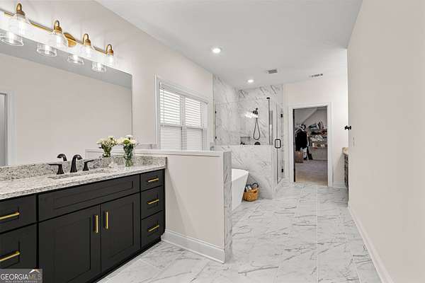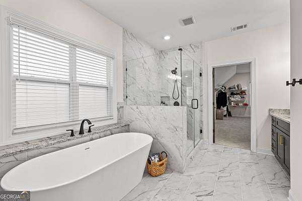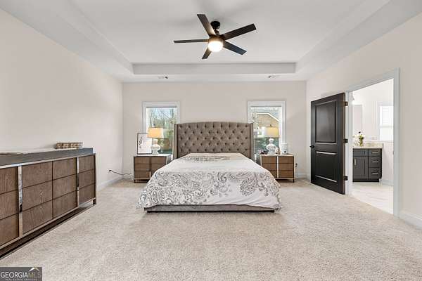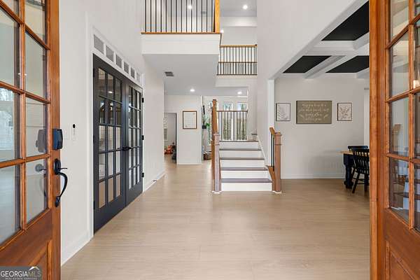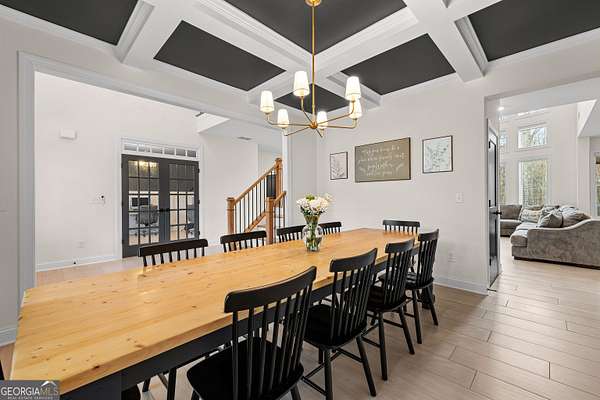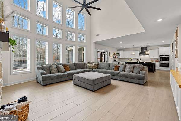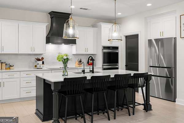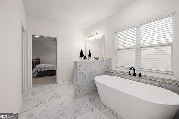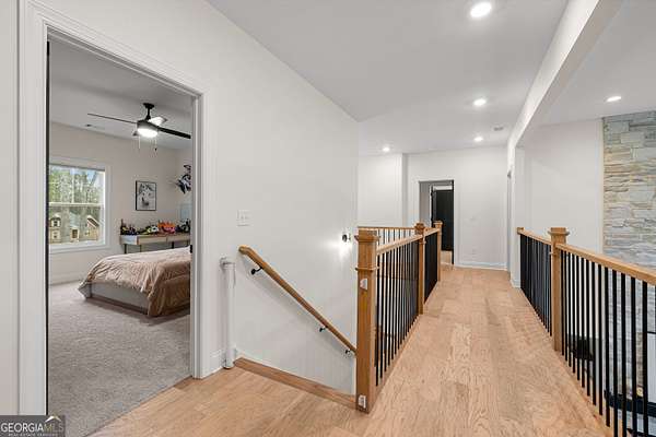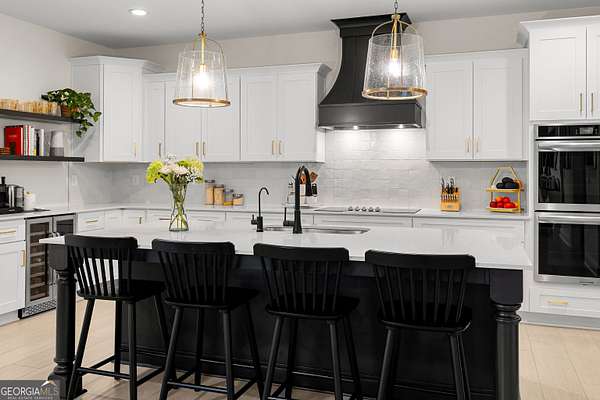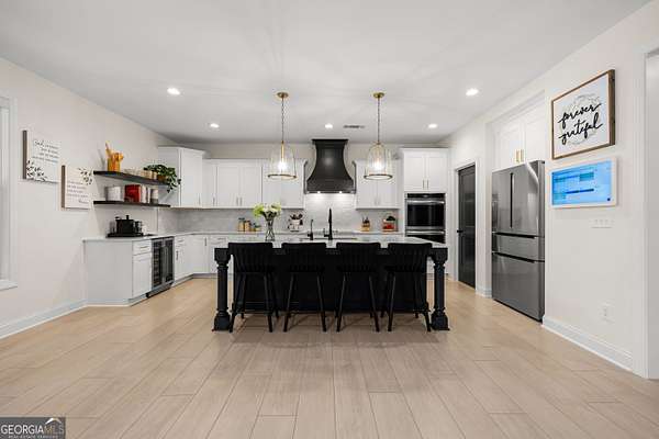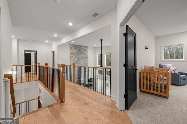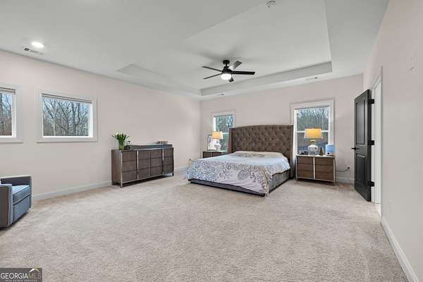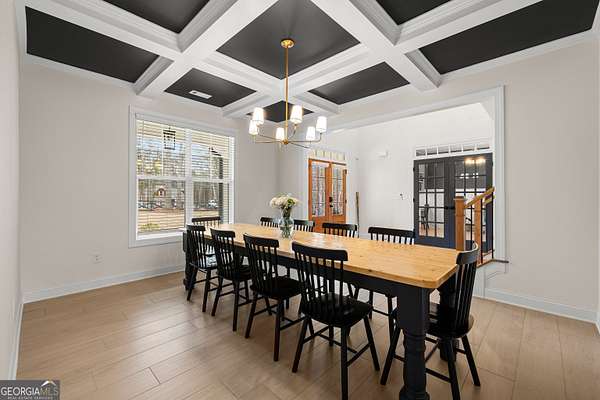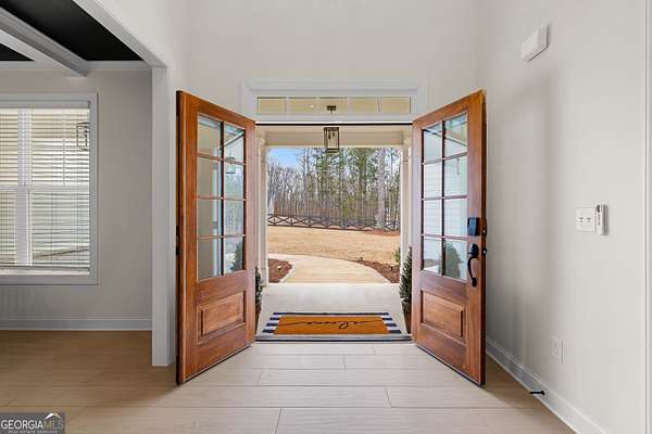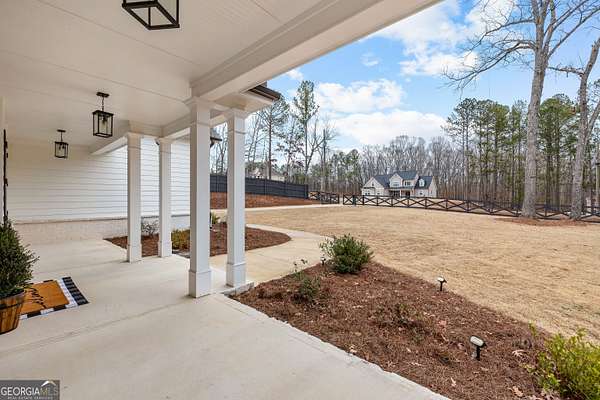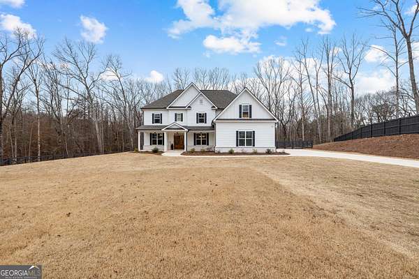 This stunning, nearly new custom home, completed at the end of 2024, offers exceptional craftsmanship, thoughtful upgrades, and a peaceful setting on 3 quiet acres with no subdivision and no HOA. With 5 bedrooms, 4 full baths, and 3,753 square feet, this home delivers luxury, functionality, and privacy in a highly desirable location. A long private concrete driveway leads to impressive curb appeal, highlighted by a welcoming covered front porch, architectural rooflines, and stained wood double front doors with transom windows. Inside, a grand foyer immediately makes a statement with hardwood stair treads, iron balusters, and dramatic open-to-below architectural views that set the tone for the rest of the home. The formal dining room is a true showpiece, featuring a striking coffered ceiling with contrasting insets, designer lighting, and ample space for hosting large gatherings. The entire main level is finished with beautiful wide-format tile flooring-no carpet, creating a clean, modern, and low-maintenance living environment. The heart of the home is the impressive two-story family room, showcasing an expansive wall of windows that floods the space with natural light. A stunning electric Illusion fireplace with stacked stone extending to the ceiling anchors the room, flanked by custom built-in cabinetry, while remote-controlled blinds add both convenience and sophistication. The chef's kitchen is equally impressive and thoughtfully designed, featuring quartz countertops, soft-close white cabinetry with upgraded hardware, stainless steel appliances including double ovens, cooktop, dishwasher, and wood vent hood, and a large island ideal for entertaining. A spacious walk-in pantry houses a built-in microwave, keeping the kitchen's sightlines clean and streamlined. The kitchen flows seamlessly into a functional mudroom for everyday organization. The main level also includes a private guest bedroom and a standout home office. The office features black French doors, custom built-in bookshelves, dual workstations, accent wall detailing, and window bench seating, making it ideal for remote work, study, or creative space. Upstairs, the oversized owner's suite is a true retreat, offering a sitting area and an incredible dressing-room-style walk-in closet. The spa-inspired primary bath features a soaking tub, tiled walk-in shower, and dual vanities. Additional bedrooms are generously sized, and the upstairs laundry room includes cabinetry and a utility sink for added convenience. Outdoor living is just as impressive. The covered back patio features a wood-burning stacked stone fireplace, creating a perfect space for relaxing or entertaining year-round. A beautifully designed decorative crossbuck fence surrounds the front yard, side yard, and sodded areas, providing a defined and polished outdoor living space. A privacy fence between neighboring properties enhances seclusion, while a manual front gate adds curb appeal and an extra layer of security. The remaining acreage extends beyond the fenced area, offering privacy, flexibility, and room to enjoy the land without overwhelming maintenance. Buyer incentive available when using the seller's preferred lender-contact listing agent for details. Additional upgrades and features include: Three-car garage with epoxy-coated floors, custom cabinetry, and ceiling storage Built-in cabinetry and sink in the laundry room Additional sod and landscaping enhancements Open-to-below second-floor overlook into the family room Extended parking and turnaround space While the home offers a peaceful, estate-style setting, it remains conveniently located less than 10 miles from Douglasville and under 40 miles from Atlanta's airport, providing easy access to shopping, dining, and commuting. This home has been meticulously maintained and thoughtfully upgraded throughout-you truly have to see it in person to appreciate the quality, space, and design.