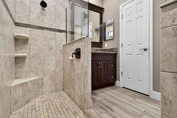 - Ceiling Fans(s), Eat-In Kitchen, High Ceilings, Kitchen/Family Room Combo, Primary Bedroom Main Floor, Solid Surface Counters, Split Bedroom, Walk-In Closet(s), Window Treatments