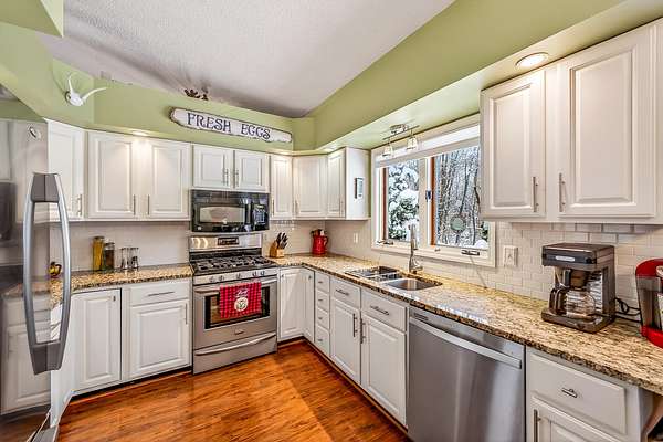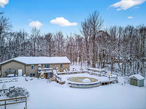 Beautiful 4 bed, 3 bath home located just down the road from Bass Lake! This home sits on a secluded, nearly 6 acre, wooded lot with tons of outdoor entertaining space, a fenced in garden area, and an above ground pool. The lawn is irrigated and you will have plenty of space for storage with 2 sheds and a 2 car garage. The main level of this home features 2 bedrooms and 2 full baths. The lower level features 2 bedrooms, 1 bath, and additional living space and storage. This home has many updates including a newer furnace, roof, and water heater. Purchase of this home gives you access to the Birch Harbor Backlot Association Bass Lake access where you can enjoy fishing and recreation all year long!
