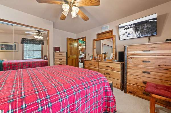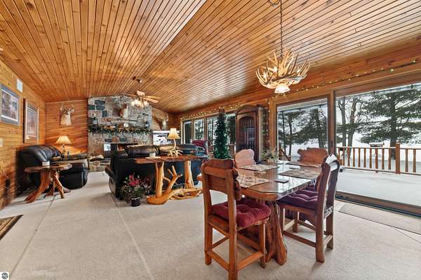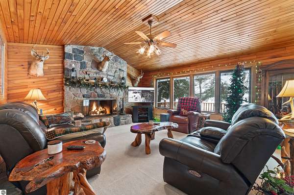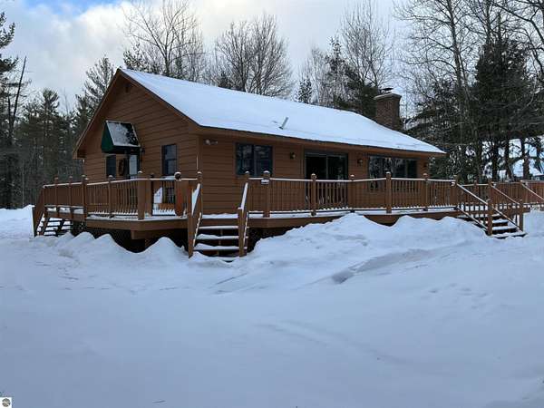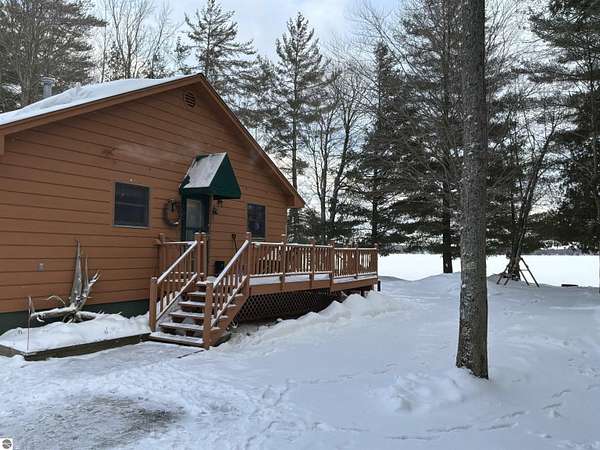 Fully furnished with plenty of room to grow! Offering a rare combination of 150 feet of private frontage on Manistee Lake with 11.85 acres of wooded land, an increasingly hard-to-find pairing in Northern Michigan. You can have horses here! Manistee Lake spans 860 acres and is known as the first lake to freeze for ice fishing and the first to warm for swimming, providing true four-season recreation. Surrounded by national forest with direct access to snowmobile and ATV trails, this setting is exceptionally quiet with no city or road noise—only the peaceful sounds of nature and Taps playing at sunset from Camp Tanuga across the water. Comfortable fully furnished, just move in and start enjoying the 4 seasons of fun! Even mud season is fun here!! Easy commute to Traverse City, Bellaire or Petoskey. The property includes a 3-car detached garage with unfinished space above for future expansion. A true Up North experience that has not been commercialized, offering privacy, acreage, and waterfront. Dock, generator, newer water softener/RO system.
