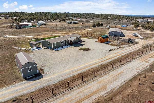Max T Hutcheson, The Wells Group of Durango, LLC, C: 970-769-7392, max@thedurangoteam.com, http://maxhutcheson.com/: Your Southwest Colorado country property awaits! With no HOA/covenants, enjoy 2+ acres of usable land with a 2021 manufacured home. The open floorplan seamlessly connects the living room, dining area, and kitchen. Ample cabinets, sleek Frigidaire appliances, large basin stainless steel sink, and island with bar seating make cooking a breeze. Big windows in addition to the sliding glass doors that lead out to the back allow natural light to fill the space. The primary suite provides a private retreat with a ceiling fan, walk in closet, dual vanity, soaking tub, and separate shower. On the other side of the home, you'll find three more sizable bedrooms that share another full bath with two sinks. The laundry room doubles as a mudroom with built-in shelving and extra storage. Another exterior door leads out to the back yard which is ready for you to build your own hobby farm. Just 20 minutes from Durango and 12 to Ignacio, there are many conveniences nearby. With a stunning home and lots of room for outdoor customization, don't miss out on this country gem.
