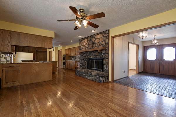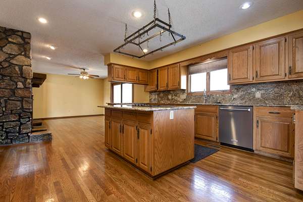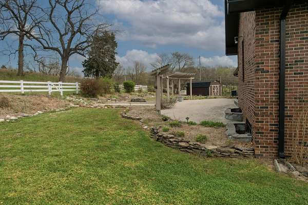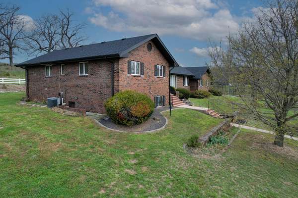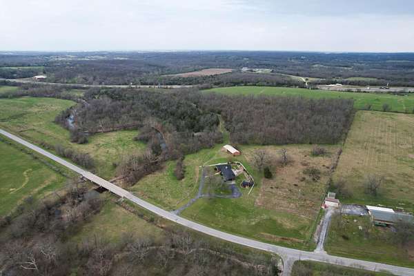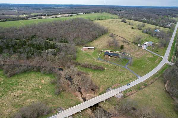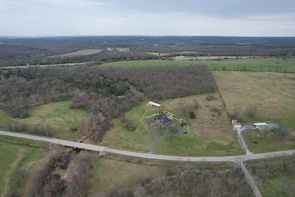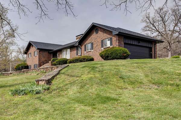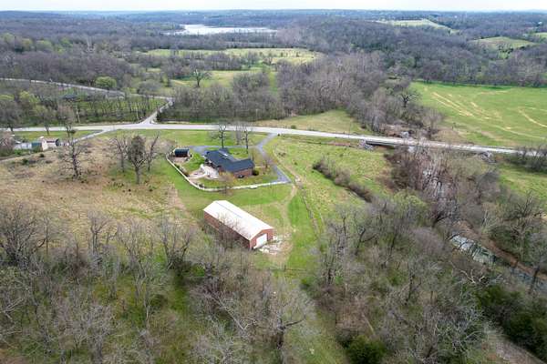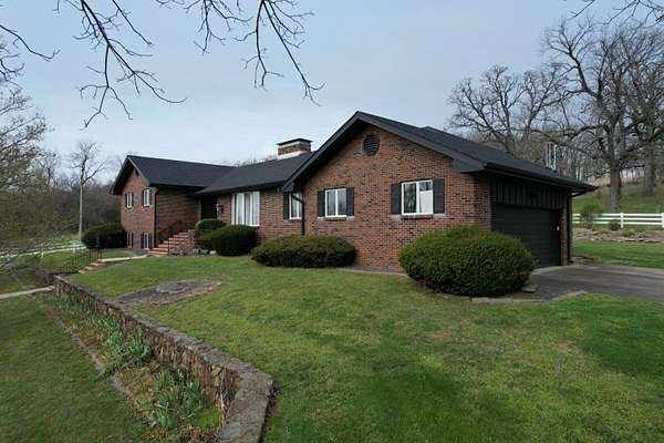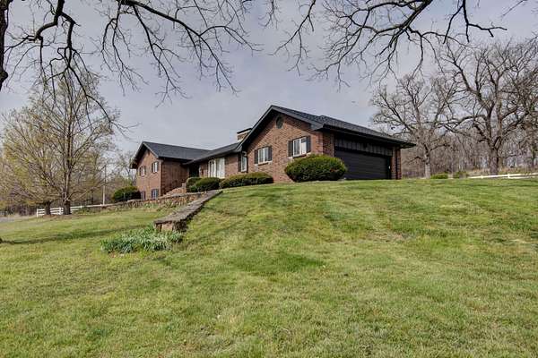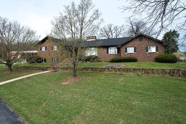 Welcome to this beautifully maintained all brick ranch style home set on a stunning 14.46 acres overlooking Little Sac River just minutes from Springfield. It features: 5 bedrooms, 3.5 baths, 3 living areas, full walk-out basement, large outbuilding and 2 car garage. The main floor of the house has nice foyer with brick flooring, large formal living area, formal dining, family room with rock gas fireplace. The large kitchen has granite countertops, granite backsplash, stainless steel appliances, island, double wall ovens, electric range and breakfast nook. There is a cozy family room area off kitchen with stone gas fireplace. Also on the main floor is large master ensuite with walk-in shower, double vanities w/granite counter tops and large walk-in closet. There are 2 more bedrooms and a full bath on the main level. The full bath has walk-in shower and granite counter tops. The basement has a large wet bar, 3rd living area with stone fireplace, 2 more bedrooms, a full bath, large laundry room with utility sink and lots of storage. Beautiful real hardwood floors in formal living room, formal dining room, kitchen, breakfast nook, upstairs family room, master bedroom, both bedrooms upstairs and hallway. Tile floors in all the bathrooms and basement. Nice back patio with landscaping. There is a large 30X40 shop with electricity with plenty of room for a workshop or to park your toys! Roof is 1 year old! This home has been updated and well cared for over the years by the same long term owner. Don't miss your opportunity to own your own private country get away!