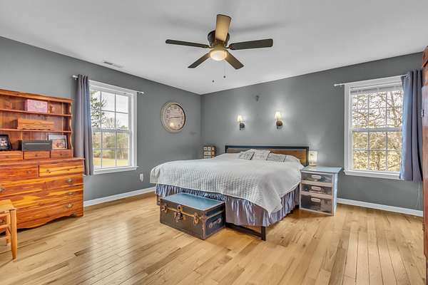 Looking for a beautiful home with enough space for everyone in your family?! This beautiful 4 BR 2 1/2 Bath home has everything you are looking for - privacy / seclusion, fenced in yard for your pets, large storage sheds, new roof in 2021, new hardwood floors upstairs, with extra bamboo flooring included, large walk in closets, bay windows and reading nooks, a huge 33x27 deck perfect for entertaining, 24x18 Bonus room, list goes on and on...Set back from the road for a little privacy, you will drive thru a set of trees to your secret treasure of a home. Enough land to start your homesteading projects with an existing chicken coop and garden, or just enjoy nature from your back deck. Awaken to the birds from your porch or roast marshmallows in your front yard fire pit.
