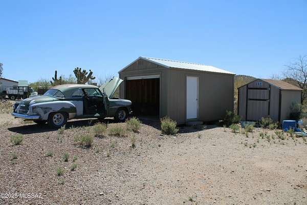 2.5 Acre Horse Property With Well and Septic, Offering Unobstructed Mountain Views and Peaceful, Quiet Living. Detached Oversized Garage Provides Ample Space for Storage or a Workshop and Includes a Private Office. Additional Features Include a Separate Unfinished Masonry Building and Multiple Sheds for Tools and Extra Storage. The Front Yard Boasts a Covered Porch, Lush Grass, Mature Trees, and a Wooden Fence, Creating a Private Oasis. The Existing Double-Wide Manufactured Home Needs Renovation--Ideal for a Fixer-Upper Project or Replacing With a New Home.