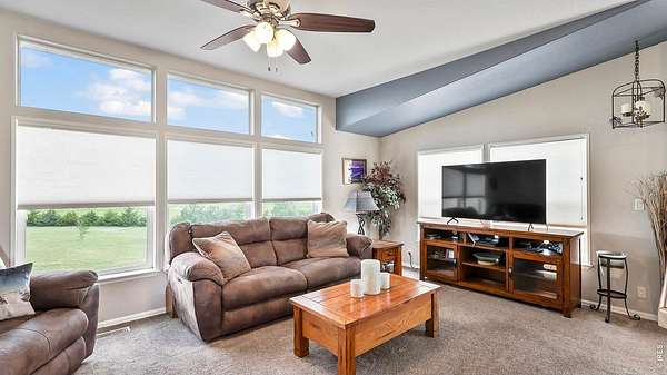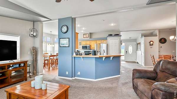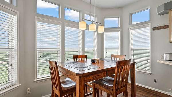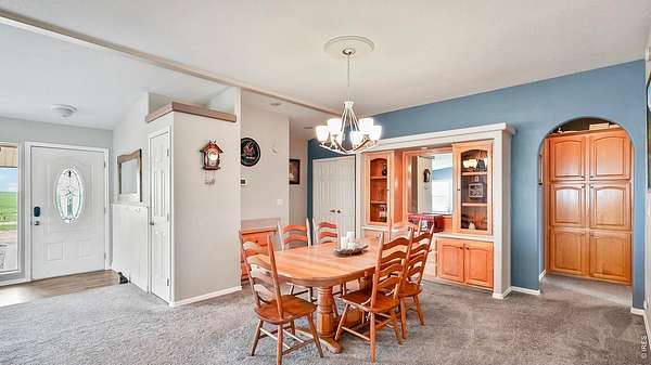 BEAUTIFUL FINISHED HOME + SHOP OVERLOOKING 80 ACRES! This gem comes complete with 3,890 SqFt of living space, a 30'x60' steel frame shop, fenced pasture, 5 working hydrants and mature windbreak. The 3 bed 4 bath features a full finished basement built to entertain around a custom wet bar, pool table, theater area, 2 walkout patio areas, huge 1/2 bath with shower rough-in and room for a refrigerator/freezer PLUS an office/4th non-confirming bedroom, new roof, newer flooring and appliances. Upstairs you'll find spacious main level amenities with a family room, living room, kitchen bar top & island, pantry, breakfast nook, formal dining room, built-in buffet, double door entry to the primary bedroom, newly updated luxury primary bathroom (soaking tub, tiled shower, double sinks, lighted mirrors), 1/2 bath off laundry, + two more bedrooms and full bath. The detached shop includes a 12' tall auto overhead door, 220v, shelving, concrete floors and air compressor. No HOA, only 33 minutes to Sterling & 17 minutes to Akron.