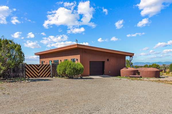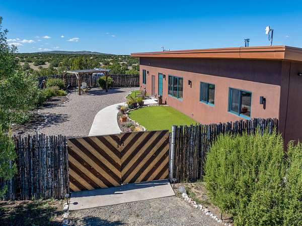 Modern home on forty acre lot with adjacent vacant forty acre lot with driveway and well. For those who want space to stretch out, or multiple lots to build a family compound on, this offering has it. Stretching 9/10's of a mile at its longest, there's room for on the property hiking, riding, or mountain biking. The home features contemporary style in a high-desert setting with breathtaking mountain views in the foothills of the Ortiz Mountains. Fully self-reliant, it boasts utilities provided by solar, wind, and water catchment, with public electric lines available on the street. The adjacent lot has a drilled and cased well, a roughed in driveway, and more of the spectacular views the area is known for. The location offers easy access to town on well-maintained roads within a gated community with no HOA. Located just 21 miles from Santa Fe and near dining and entertainment options in Madrid and Cerrillos, this offering provides perfect retreat with room for future development and a move in ready home. 49 Blue Agave (MLS 202502557) and 65 Grenfell Ranch (202600867) are also offered for sale separately.